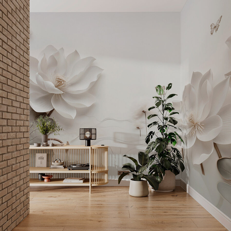 Transformați orice spațiu cu această pictură murală de vis cu flori delicate din hârtie albă și fluturi fluturând. Imaginați-vă că intrați într-o cameră și simțiți că tocmai ați pășit într-o grădină senină – nu este nevoie de udare! Designul moale și minimalist aduce o notă de natură în interior, făcând să vă simțiți ca primăvara pe tot parcursul anului. Este decorul perfect pentru după-amiezele leneșe sau pentru întâlnirile pline de viață. Imaginați-vă prieteni care se relaxează sau copii care se joacă, în timp ce sunt înconjurați de o atmosferă calmă și elegantă. Această pictură murală nu este doar decor; este o experiență care așteaptă să vă înveselească pereții.