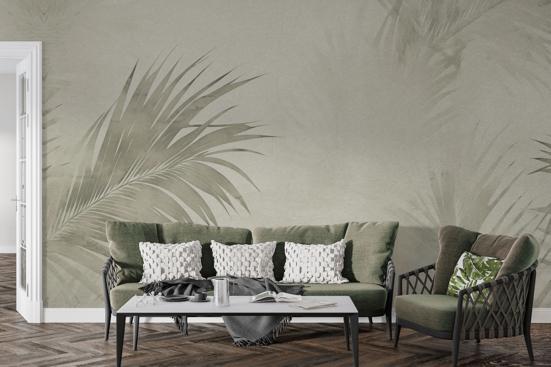 Transformați orice cameră într-o evadare tropicală cu această pictură murală cu frunze moi de palmier pe un fundal neutru liniștitor. Este ca și cum ai aduce o felie de paradis chiar în casa ta! Imaginează-ți că te relaxezi cu o carte, înconjurat de aceste verdețuri blânde, sorbind ceva răcoritor. Culorile discrete înseamnă că se va potrivi fără efort cu decorul existent, oferind o atmosferă calmă fără a atrage atenția.