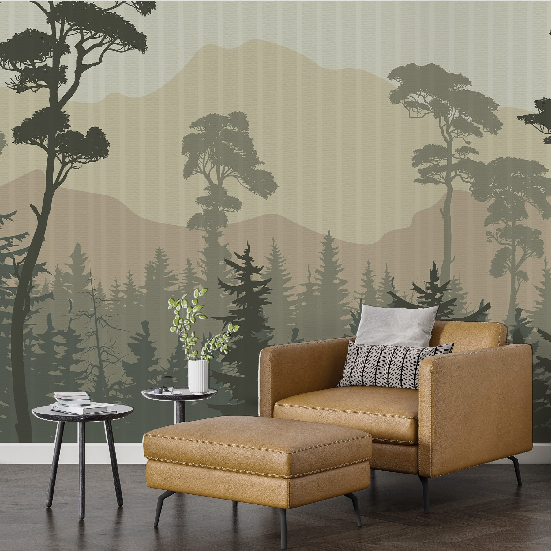 Transformați orice spațiu într-o evadare senină cu acest “Fototapet Landscape of Trees and Mountains”. Imaginați-vă: o cameră de zi confortabilă sau un birou liniștit, scăldat în nuanțe suave ale naturii.