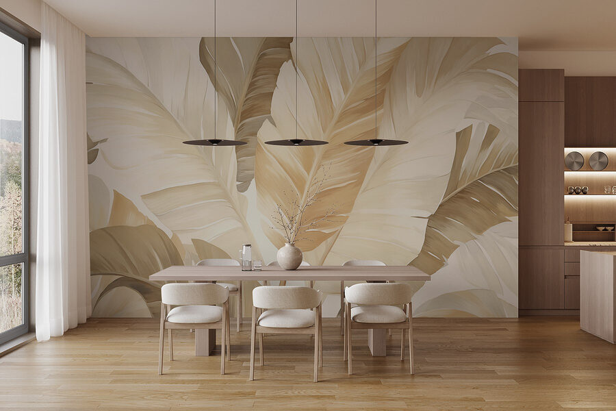 Transformați orice spațiu cu pictura murală “Natural Elegance” – este ca și cum ați aduce o grădină luxuriantă înăuntru, fără să vă mai chinuiți să udați plantele! Aceste tonuri blânde sunt suficient de liniștitoare pentru a face chiar și cea mai aglomerată zi să se simtă un pic mai aerisită. Imaginați-vă sorbind cafea în timp ce vă relaxați în fața acestei scene senine; este practic o mini-vacanță la domiciliu. Perfecte pentru un living confortabil sau un dormitor liniștit, aceste frunze de palmier adaugă un sentiment de îmbrățișare a naturii. În plus, se spune că subtilitatea este cheia, iar această frumusețe nu strigă – șoptește sofisticare cu o întorsătură proaspătă. Perfect pentru oricine tânjește după o notă de aer liber!