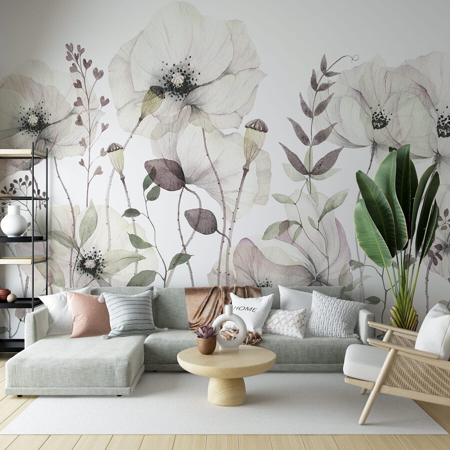 Transformați orice cameră cu această pictură murală încântătoare, “Flori delicate în nuanțe delicate”. Imaginați-vă că pășiți în spațiul dvs. și vă simțiți ca și cum v-ați rătăcit într-o grădină de vis. Aceste flori blânde – ca niște șoapte de primăvară – însuflețesc pereții terni și insuflă un farmec blând. Imaginați-vă: vibrațiile cafelei de dimineață sau discuțiile confortabile de seară, toate înconjurate de aceste culori liniștitoare. Prietenii vor admira frumusețea sa subtilă și se vor întreba unde ați găsit o astfel de bijuterie. Este perfect pentru a crea o evadare senină chiar la tine acasă. Cine nu și-ar dori această mică atingere a naturii în interior?