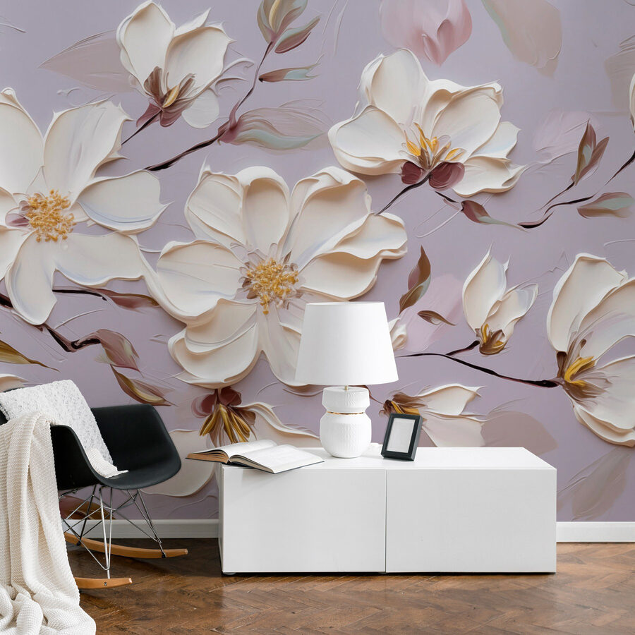 Transformați orice cameră într-o evadare încântătoare cu această pictură murală cu flori albe delicate. Imaginați-vă că intrați în spațiul dvs. și sunteți întâmpinați de aceste flori uimitoare, care vă șoptesc povești de seninătate și grație. Nuanțele suave și detaliile complexe evocă un sentiment de calm, aproape ca o briză blândă într-o zi caldă. Perfectă pentru a crea un colț de lectură confortabil sau un dormitor de vis, este ca și cum ai aduce o bucată de natură în interior – fără polen. Prietenii se vor minuna, iar tu s-ar putea chiar să visezi cu ochii deschiși mai mult decât de obicei, pierdut în frumusețea paradisului tău floral. Faceți un pas în această fantezie florală și lăsați farmecul să se desfășoare!
