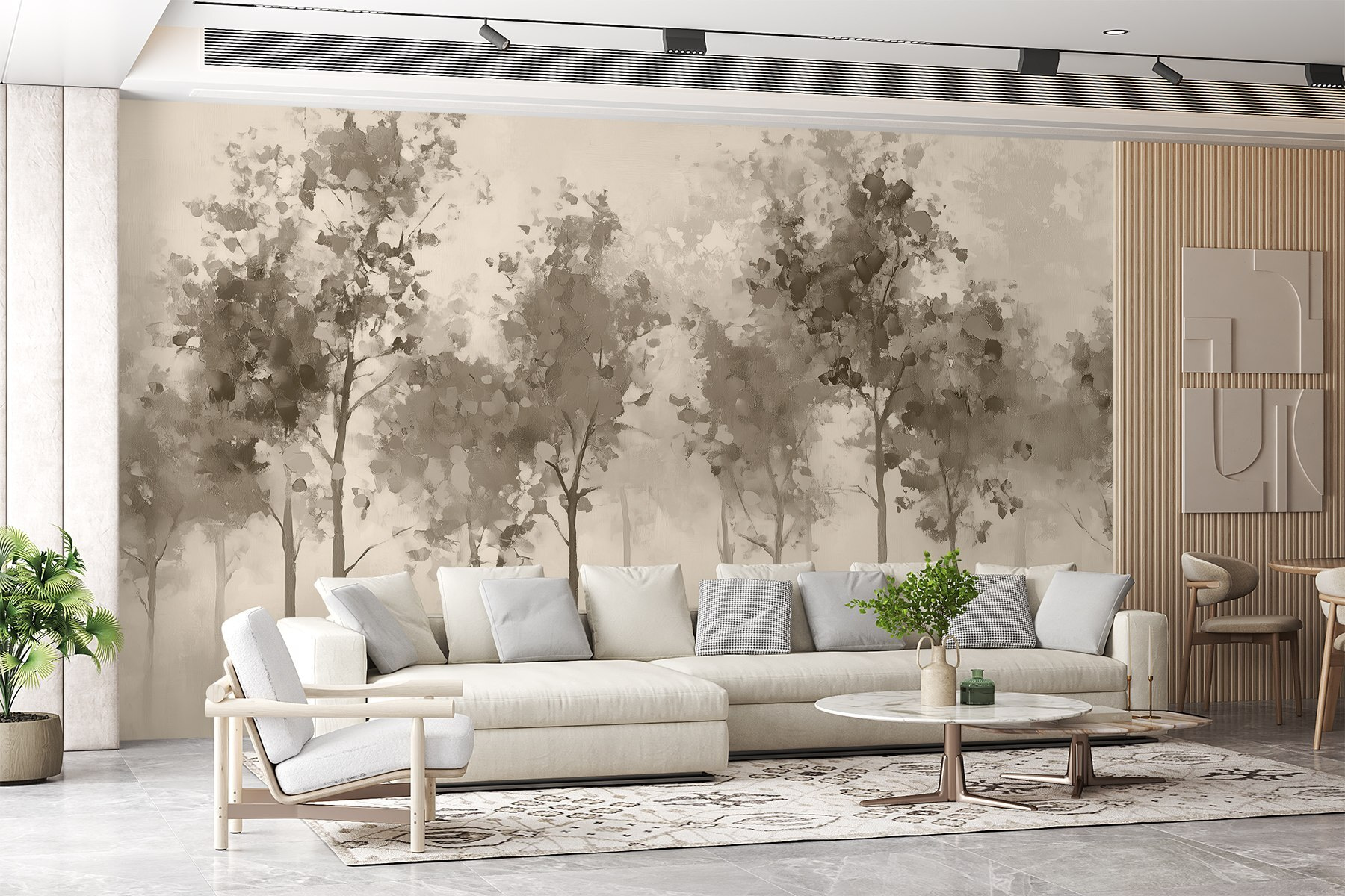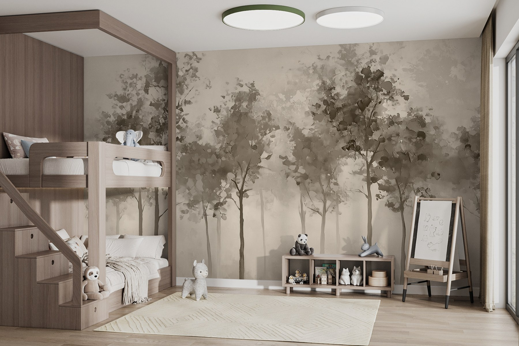 Transformați orice cameră într-o escapadă senină cu această pictură murală încântătoare cu copaci învăluiți în ceață moale. Imaginați-vă sorbindu-vă cafeaua de dimineață în timp ce vă pierdeți în tonurile calme, atenuate, care par să șoptească noutățile dulci ale naturii. Este ca și cum ai aduce o pădure liniștită chiar în spațiul tău de locuit. Această pictură murală nu este doar un decor; este un stimulent pentru starea de spirit. Perfect pentru cei care doresc o notă de liniște fără frunze și creaturi în casa lor. În plus, cui nu-i place să se simtă ca într-un refugiu de vis într-o pădure?