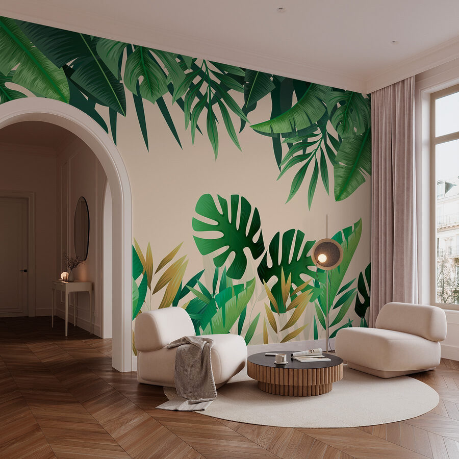 Transformați orice cameră într-o evadare tropicală cu această pictură murală vibrantă de frunze verzi. Imaginați-vă că intrați și vă simțiți ca și cum ați pășit într-o pădure tropicală luxuriantă – propria magie de purificare a aerului a naturii chiar acasă. Verdele bogat și modelele jucăușe sunt ca o gură de aer proaspăt, făcând chiar și un spațiu mic să se simtă deschis și viu. Perfectă pentru un colț de lectură confortabil sau pentru un perete de bucătărie ciudat, este exact ceea ce trebuie pentru a stârni conversația. Prietenii se vor întreba dacă o aventură în junglă este chiar după colț. Cine are nevoie de o vacanță când are asta?