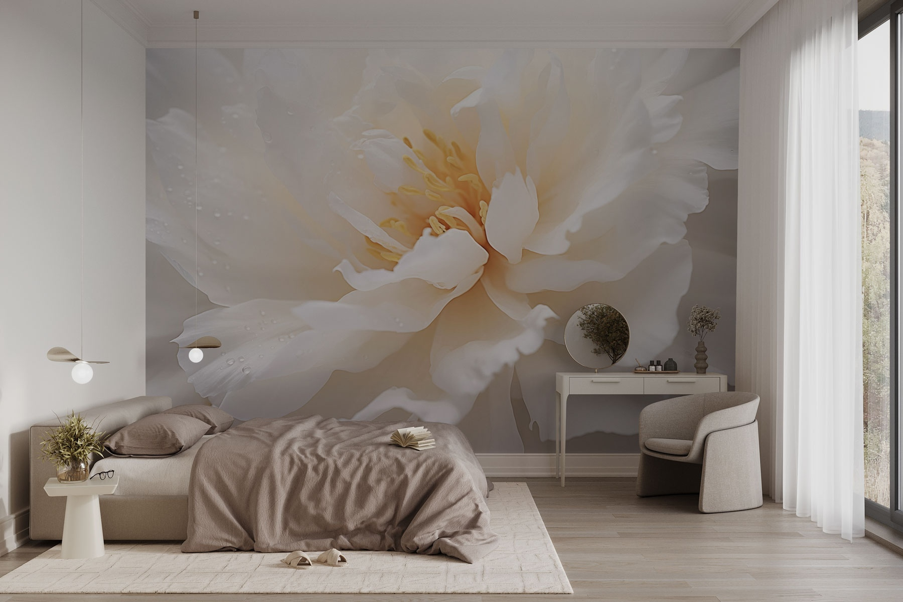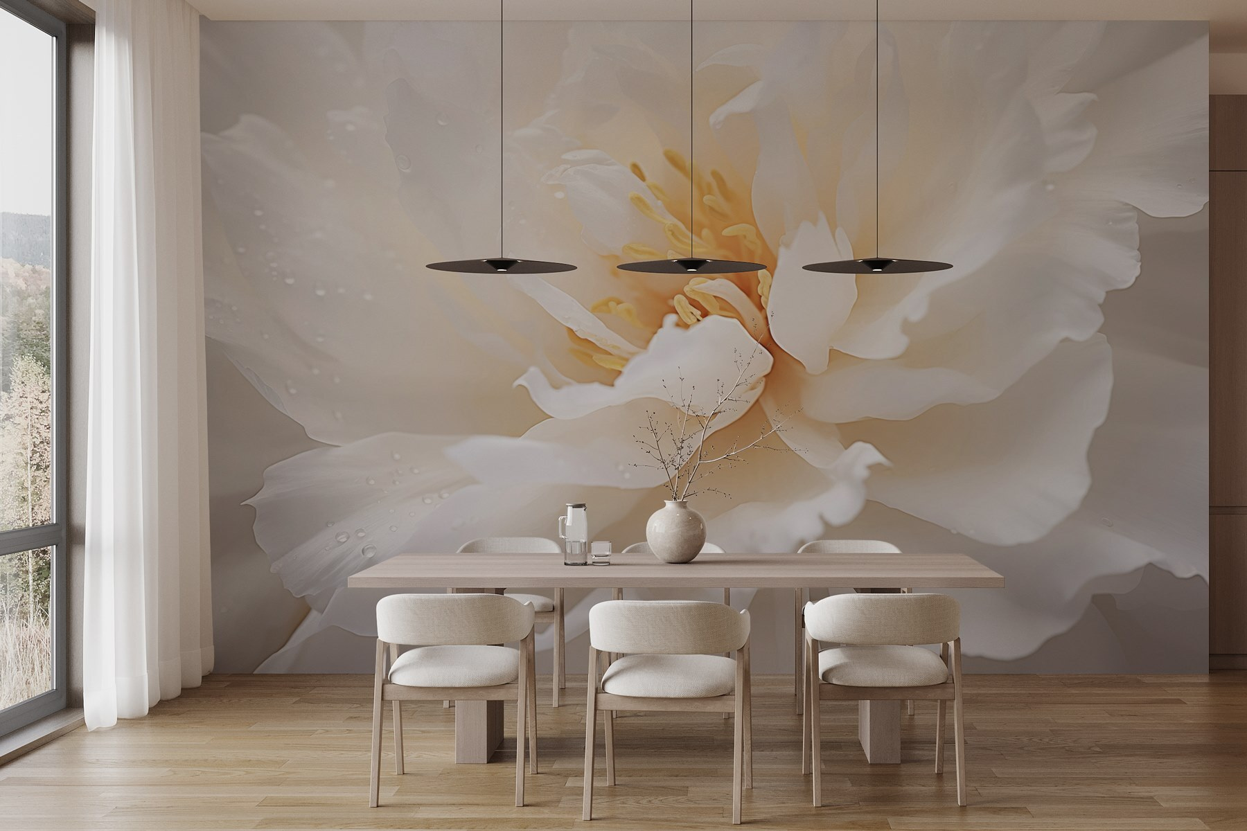 Transformați orice cameră cu “Petale delicate cu picături blânde de rouă”. Această pictură murală surprinde frumusețea bujorilor, petalele lor moi strălucind ca și cum tocmai ar fi fost sărutate de roua dimineții. Imaginați-vă într-un colț confortabil, sorbind ceai și simțindu-vă ca într-o grădină senină. Este mai mult decât un simplu decor – este o evadare încântătoare din agitație și agitație. Cu esența sa liniștitoare, această pictură murală invită pacea chiar în spațiul dvs. Fie că este vorba de camera de zi sau de un colțișor confortabil, aceasta aduce o gură de aer proaspăt, transformând pereții într-o experiență. Perfect pentru cei care apreciază atingerea blândă a naturii!