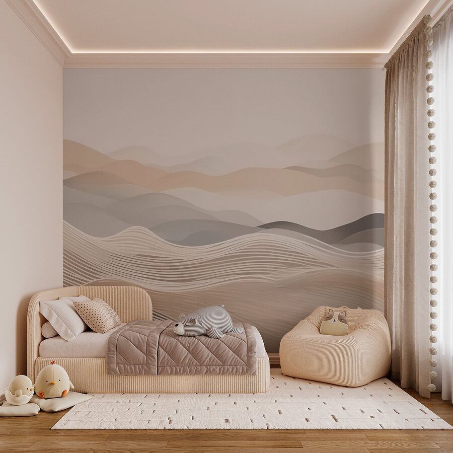 Transformați orice perete într-o evadare confortabilă cu această pictură murală care prezintă dealuri blânde în valuri moi de alb și maro. Este ca și cum ai aduce o felie de natură chiar în inima casei tale. Imaginați-vă că vă relaxați cu o carte bună sau doar sorbind o cafea în timp ce priviți aceste curbe liniștitoare. Par aproape că se unduiesc ca o mare calmă – perfect pentru a crea o atmosferă liniștită. Tonurile subtile ale acestei picturi murale se potrivesc de minune cu orice decor, ceea ce o face un fundal fantastic pentru aventurile tale în materie de design interior. Totul constă în găsirea echilibrului între confort și stil, nu credeți? Adaugă o notă de liniște spațiului tău; la urma urmei, cine nu vrea ca locuința sa să se simtă ca o îmbrățișare caldă?