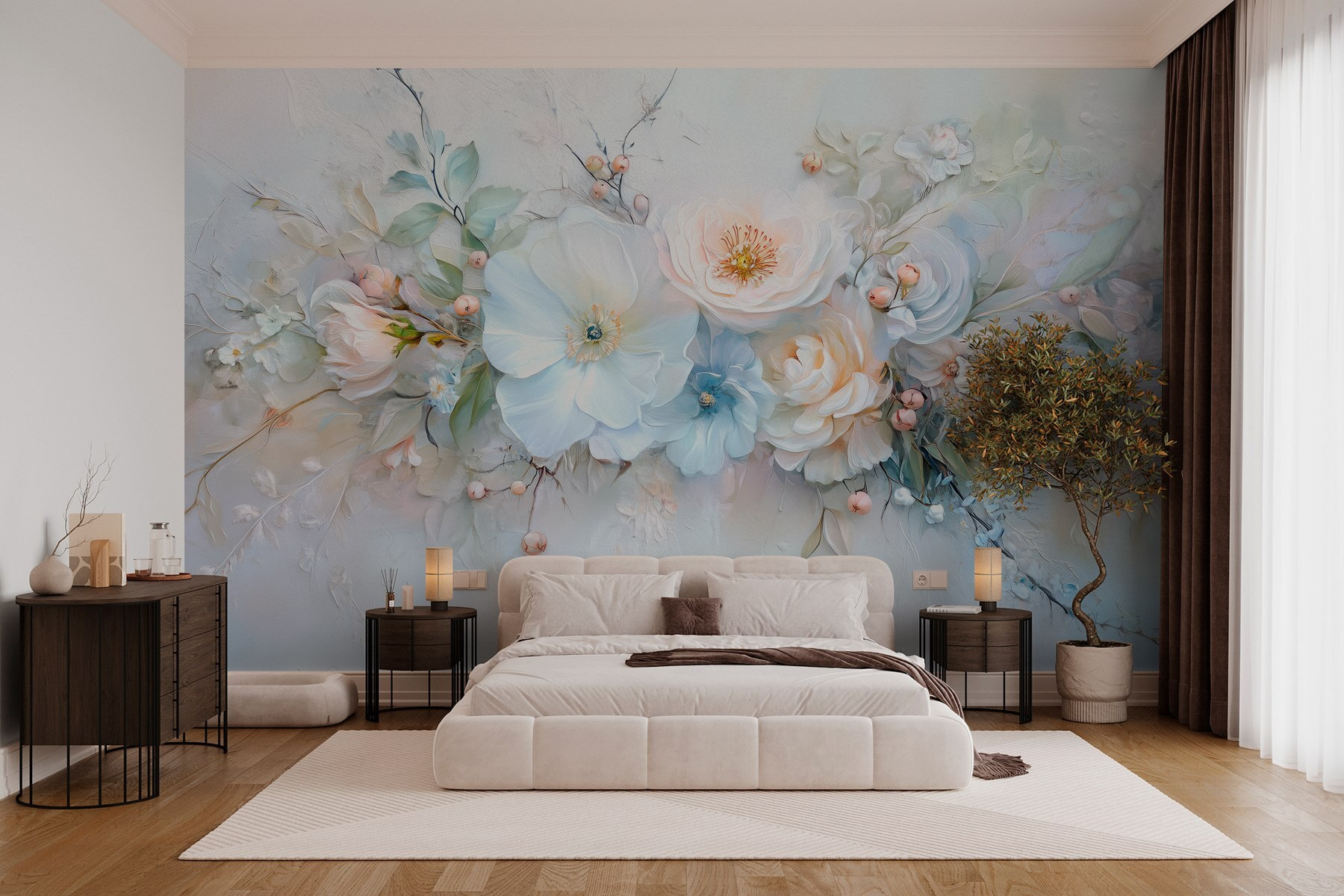 Transformați orice cameră cu această uimitoare pictură murală florală, cu un amestec hipnotizant de flori moi și frunze delicate. Imaginați-vă că intrați în spațiul dvs. și vă simțiți înălțați de aceste flori elegante, aproape ca și cum v-ar șopti secrete dulci dintr-o grădină însorită. Culorile blânde creează o atmosferă senină, perfectă pentru relaxare după o zi lungă. Este ca și cum ai avea o mică felie de natură în interior, care te încurajează. Oaspeții s-ar putea întreba dacă aveți un deget verde – când, de fapt, totul se datorează acestui mural minunat. O atingere perfectă pentru colțuri confortabile sau chiar o declarație îndrăzneață într-o cameră de zi.