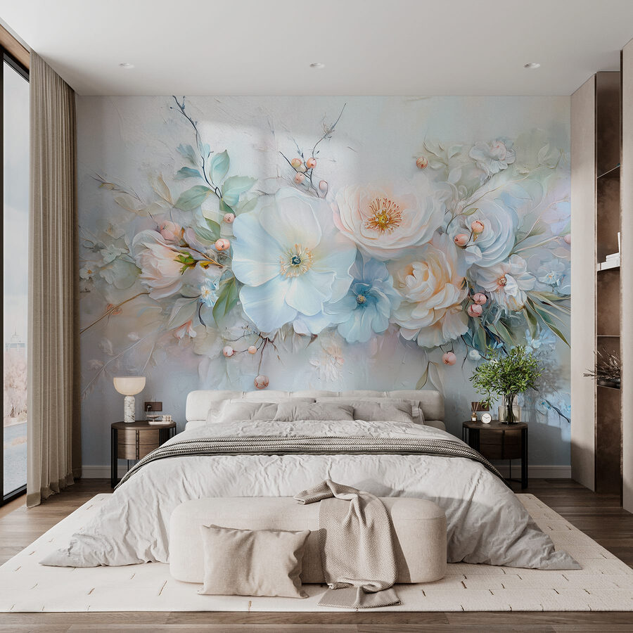 Transformați orice cameră cu această uimitoare pictură murală florală, cu un amestec hipnotizant de flori moi și frunze delicate. Imaginați-vă că intrați în spațiul dvs. și vă simțiți înălțați de aceste flori elegante, aproape ca și cum v-ar șopti secrete dulci dintr-o grădină însorită. Culorile blânde creează o atmosferă senină, perfectă pentru relaxare după o zi lungă. Este ca și cum ai avea o mică felie de natură în interior, care te încurajează. Oaspeții s-ar putea întreba dacă aveți un deget verde – când, de fapt, totul se datorează acestui mural minunat. O atingere perfectă pentru colțuri confortabile sau chiar o declarație îndrăzneață într-o cameră de zi.