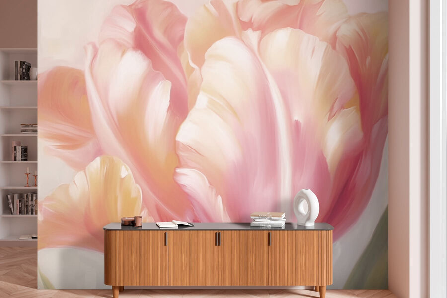 Transformați orice cameră într-un refugiu confortabil cu această frumoasă pictură murală cu lalele. Petalele înroșite în culori moi, pastelate, vă fac să simțiți că primăvara este doar la o privire distanță. Imaginați-vă că vă treziți în fiecare zi cu această floare minunată – este ca și cum ați aduce o bucată de natură în interior, fără polen! Perfectă pentru camera de zi sau dormitor, aceasta adaugă o notă blândă care înveselește atmosfera. Prietenii ar putea chiar să vă întrebe dacă aveți o grădină secretă. Așa că dați-i drumul, lăsați această pictură murală să vă învăluie pereții în căldură și veselie – s-ar putea să inspire o petrecere spontană cu ceai sau două!