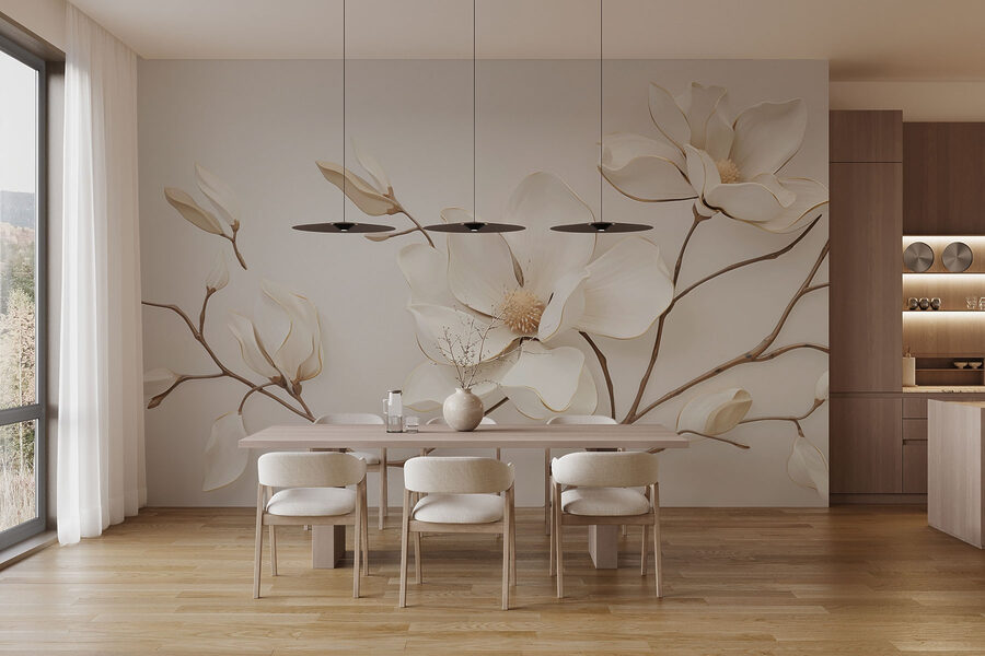 Transformarea unui perete gol într-o evadare senină este la fel de ușoară ca această uimitoare pictură murală cu flori albe. Imaginați-vă – acele flori grațioase care se întind, aproape cerând să fie admirate. Este ca și cum ai invita natura în casă, fără polenul deranjant! Pe măsură ce lumina soarelui dansează pe petalele pictate delicat, camera pare mai ușoară, mai aerisită – este o gură de aer proaspăt. Perfectă pentru un living confortabil sau un dormitor liniștit, această pictură murală nu este doar decor, ci spune o poveste de eleganță și calm. Imaginați-vă sorbind ceai cu prietenii, în timp ce sunteți înconjurați de această ambianță liniștită. Frumusețea nu constă doar în design, ci și în modul în care face ca spațiul să se simtă viu, dar în același timp senin. Deci, de ce să așteptați? Lasă această piesă să înflorească în casa ta!
