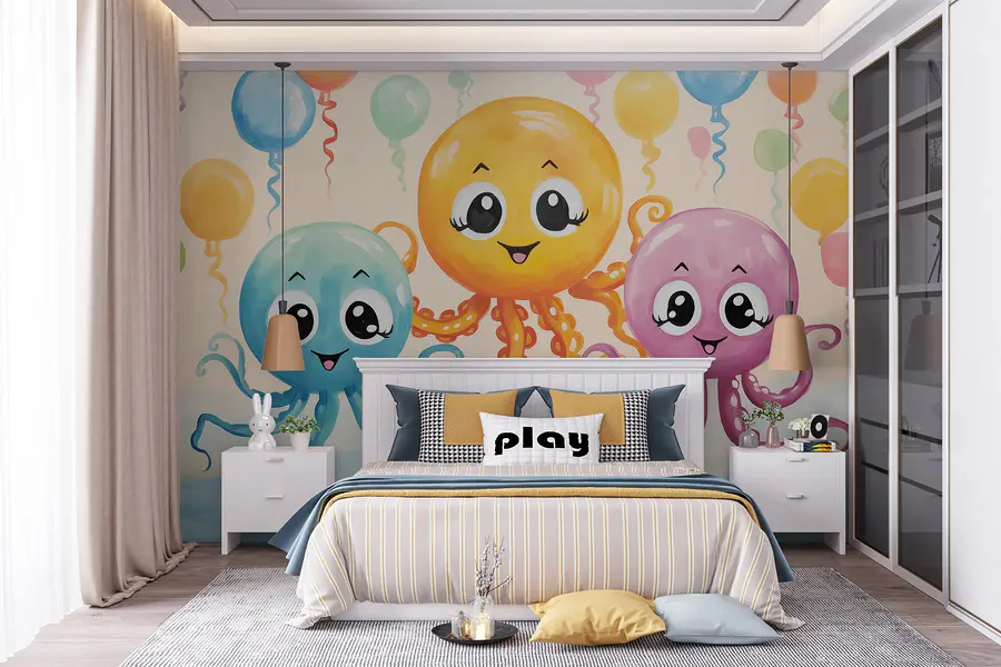 Scufundați-vă într-un strop de distracție cu această pictură murală veselă de caracatițe vesele care plutesc cu baloane vibrante. Vă puteți imagina înviorarea unui perete monoton? Aceste creaturi marine adorabile, completate cu ochi mari și zâmbitori, aduc un val de capricii în orice cameră. Perfecte pentru un spațiu pentru copii sau chiar pentru un colț jucăuș în care creativitatea face bule. Imaginați-vă-l: un spațiu plin de râsete și imaginație jucăușă, care îi inspiră pe cei mici să viseze mare. Culorile vii ies în evidență pe fundalul moale, creând o atmosferă primitoare. Este mai mult decât un simplu decor; este ca și cum ai avea un festival al bucuriei pe peretele tău!