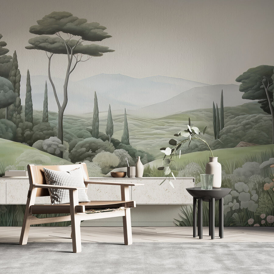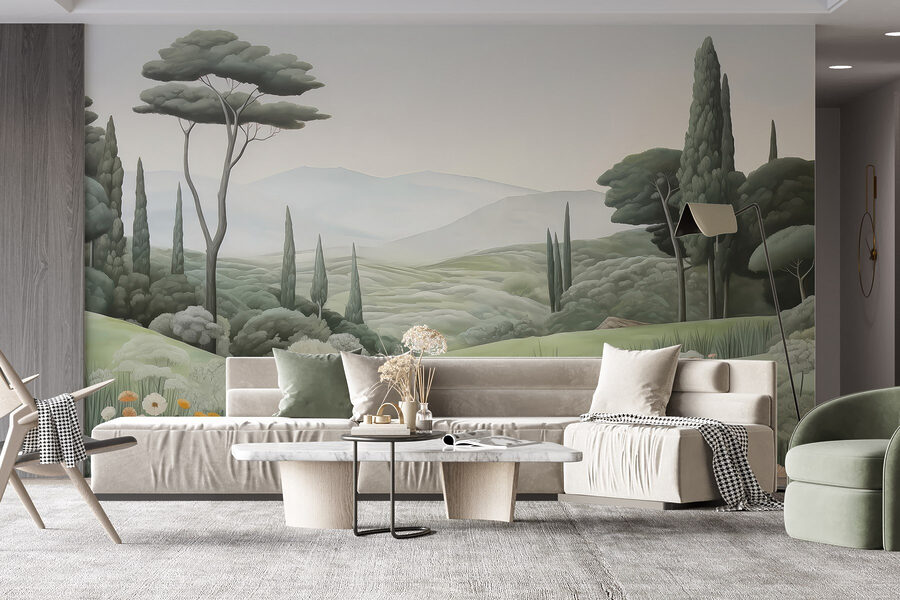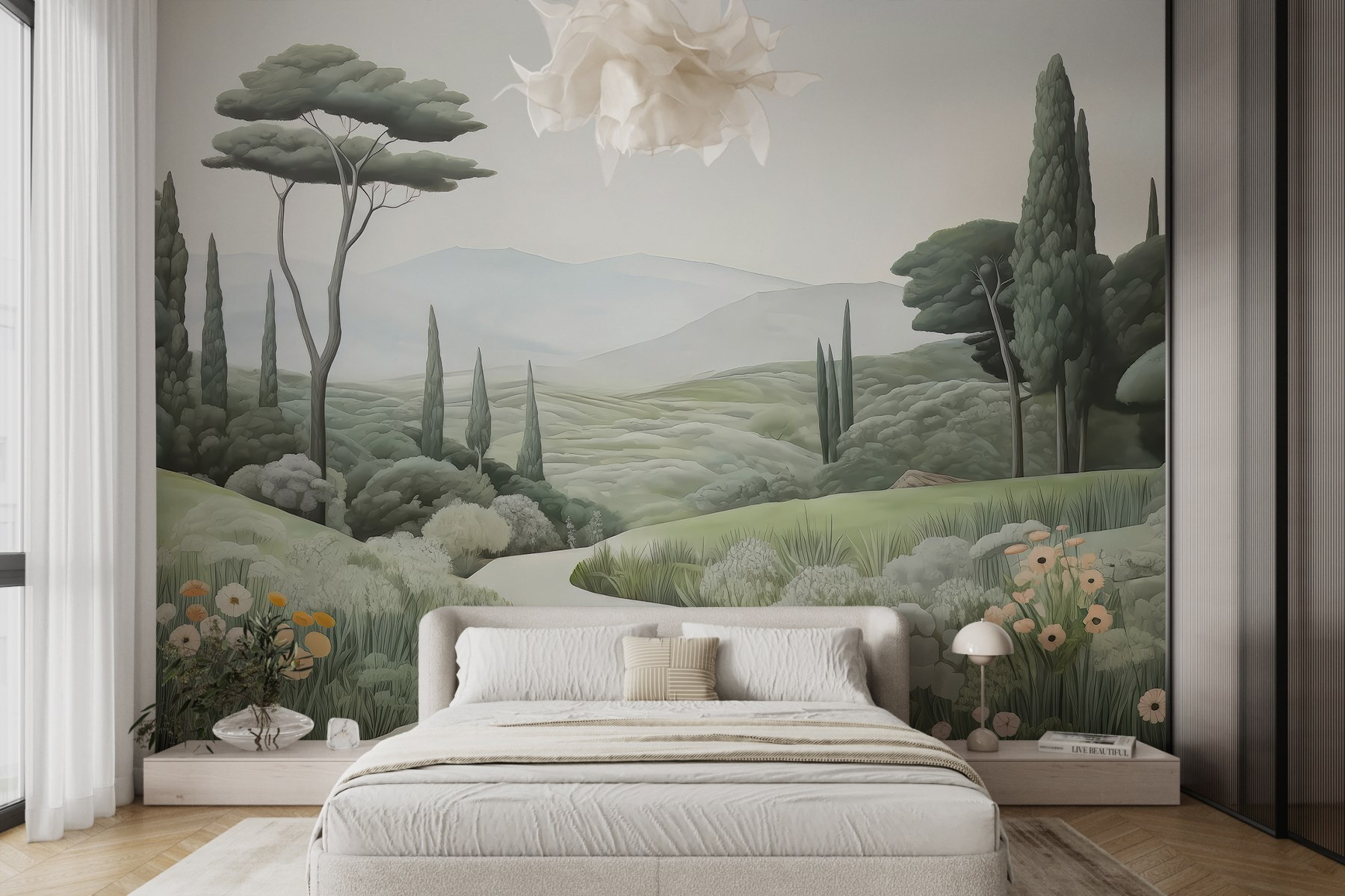 Transformați-vă spațiul cu această pictură murală încântătoare care prezintă un peisaj senin, cu o cărare sinuoasă și copaci grațioși. Imaginați-vă că pășiți direct într-o evadare pașnică de fiecare dată când intrați în cameră. Nuanțele blânde de verde și șoaptele naturii invită la un sentiment de calm, perfect pentru acele seri confortabile când relaxarea este esențială.