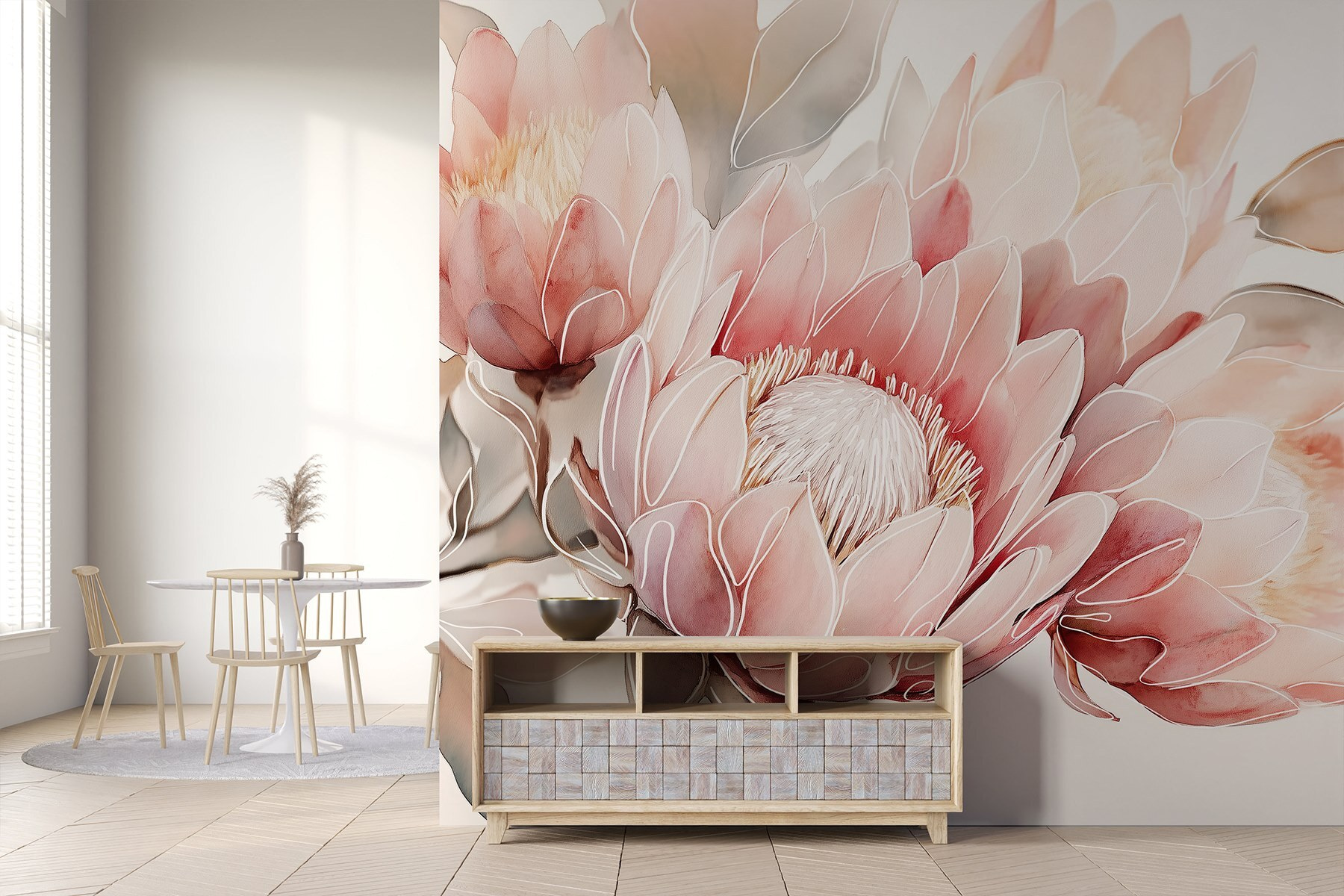Vă prezentăm “Delicate Petals in Soft Hues”, o pictură murală care aduce o grădină subtilă chiar în spațiul dvs. Imaginați-vă că intrați într-o cameră și simțiți instantaneu acea vibrație blândă și liniștitoare, ca o dimineață blândă de primăvară. Culorile pastelate dansează împreună, evocând sentimente de căldură și liniște. Imaginați-vă sorbind ceai în timp ce vă sprijiniți de un perete împodobit cu aceste flori frumoase – este ca și cum ați îmbrățișa un nor făcut din flori. Perfectă pentru un colț de lectură confortabil sau pentru un dormitor liniștit, atingerea ușoară a acestui mural poate transforma orice perete obișnuit într-o evadare de vis. Doar nu dați vina pe ea dacă vă treziți visând cu ochii deschiși.