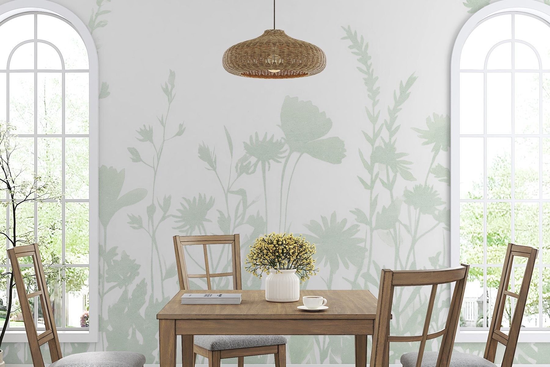 Transformați-vă spațiul cu pictura murală “Delicate Silhouettes of Blooming Flowers”. Imaginați-vă că intrați într-o cameră care seamănă cu o grădină senină, în care verdele moale răsare ușor pe un fundal alb și fermecător. Este ca și cum natura a decis să ia un loc confortabil în interior. Această pictură murală șoptește eleganță fără să atragă atenția, fiind perfectă pentru acele colțuri liniștite în care lumina soarelui dansează și visele zăbovesc. Oaspeții s-ar putea să se oprească, captivați de detaliile minunate, iar tu vei descoperi că transformă momentele de zi cu zi în ceva special. Perfectă pentru cei care adoră vibrațiile proaspete, este o modalitate subtilă de a insufla viață în orice cameră.