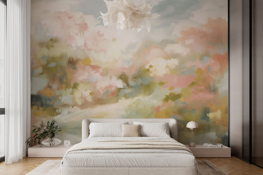Imaginați-vă că pășiți într-un peisaj senin de fiecare dată când intrați într-o cameră. Această pictură murală aduce frumusețea naturii direct pe pereții dvs., transformându-vă spațiul într-o evadare liniștită. Nuanțele pastelate moi se rotesc împreună, evocând grădini înflorite și munți îndepărtați. Este ca și cum natura ți-ar îmbrățișa casa cu căldură! Perfectă pentru orice spațiu – un living confortabil sau un dormitor liniștit – pictura murală adaugă un strop de culoare liniștitoare și farmec. Prietenii se vor lăsa purtați de visul cu ochii deschiși al plimbărilor însorite și cine nu și-ar dori un pic mai multă dulceață în viața de zi cu zi?