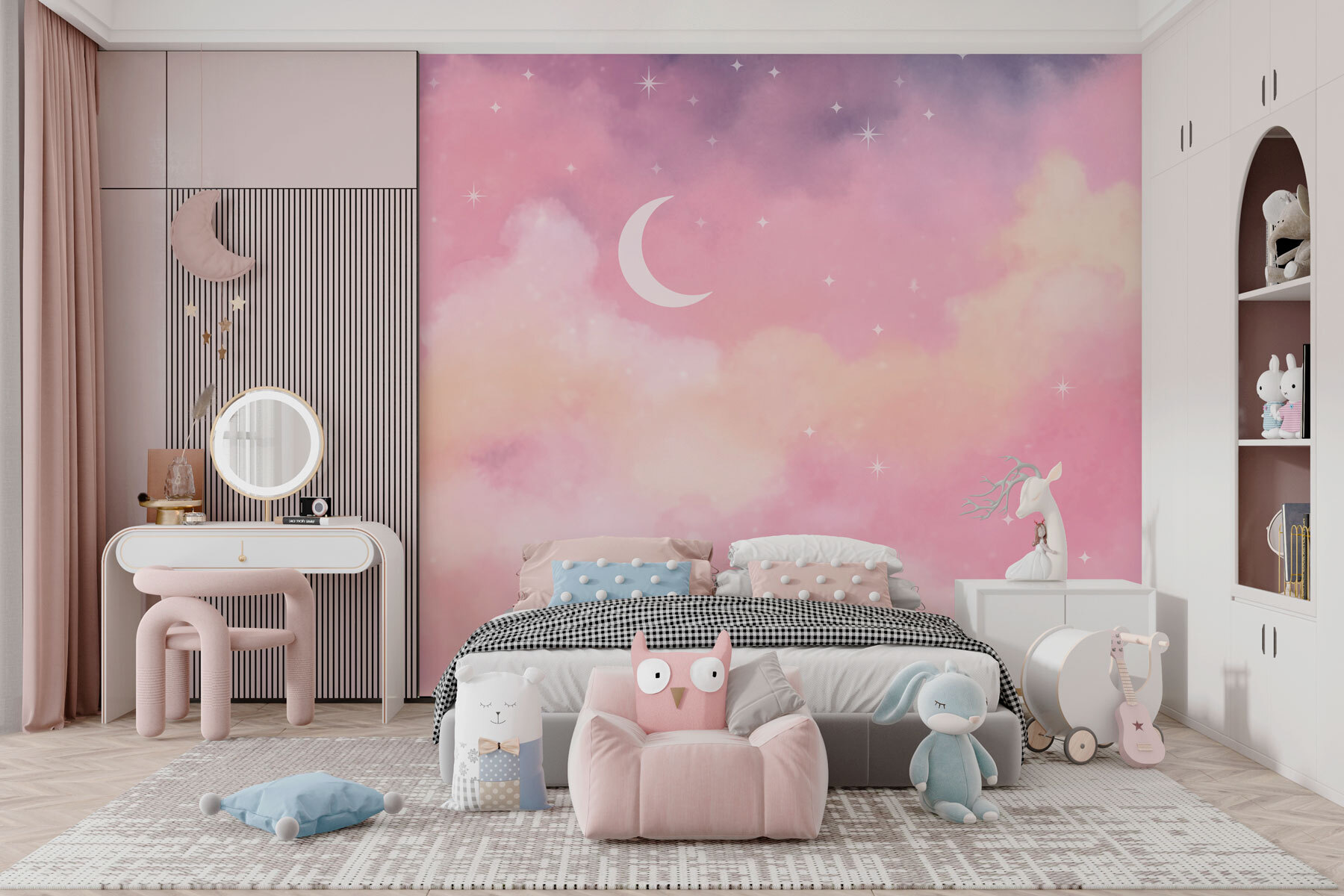 Transformați camera unui copil într-un cer nocturn de vis cu această pictură murală încântătoare cu nuanțe roz blând, stele delicate și o lună în semilună blândă. Imaginați-vă povești înainte de culcare desfășurate sub un tavan luminat de stele, unde fiecare privire inspiră mirare. Perfectă pentru aprinderea viselor de aventură și explorare, aceasta creează o atmosferă senină, transformând orice spațiu într-un refugiu confortabil. Este ca și cum ai aduce o bucățică de univers în casă – perfect pentru a adormi sau pentru a te cuibări cu o carte bună. Imaginați-vă doar ochii somnoroși luminându-se când văd această scenă magică!