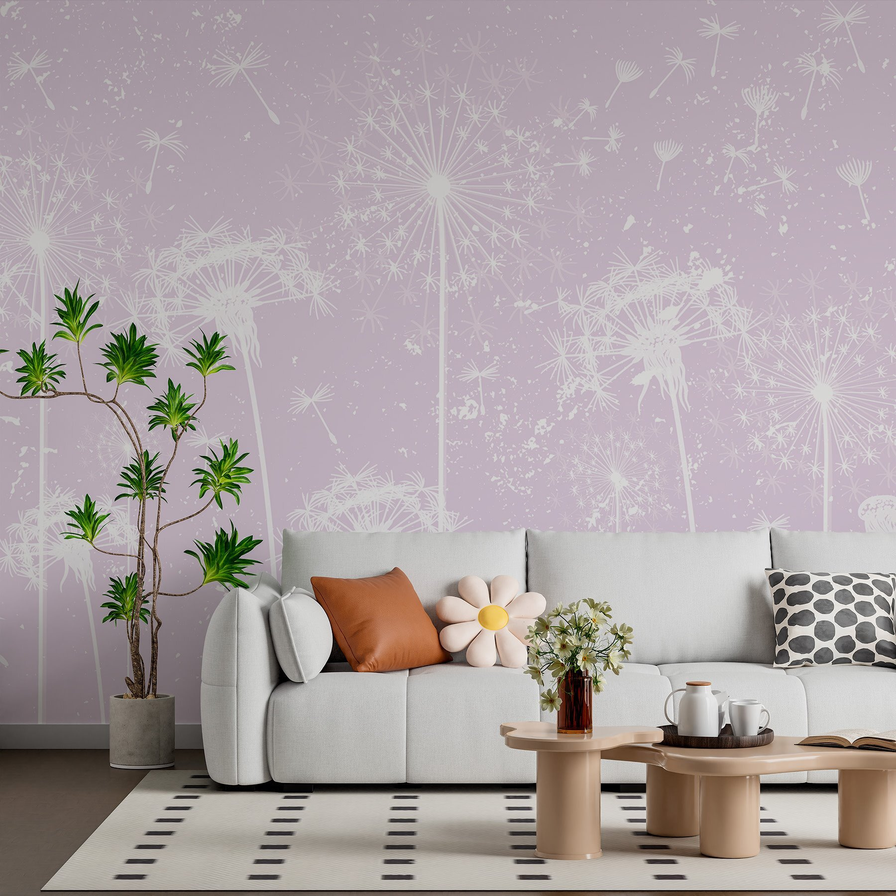 Imaginați-vă că pășiți într-un spațiu senin, plin de șoapta blândă a pufului de păpădie care dansează în adierea vântului. Această pictură murală, cu florile sale de păpădie albe și moi pe un fundal blush, transformă orice cameră într-o evadare de vis. Este ca și cum ai aduce o gură de aer proaspăt chiar în casa ta. Imaginați-vă că vă relaxați cu o carte, cu aceste petale delicate capturând lumina în timp ce vă sorbiți ceaiul preferat. Prietenii ar putea spune: “Wow, unde ai găsit asta?” Și sincer, cui nu-i place fiorul secret al unei descoperiri unice? În plus, păpădiile simbolizează speranța și dorințele – perfect pentru un loc pe care îl prețuiți. Este mai mult decât un decor; este o experiență care așteaptă să se desfășoare.