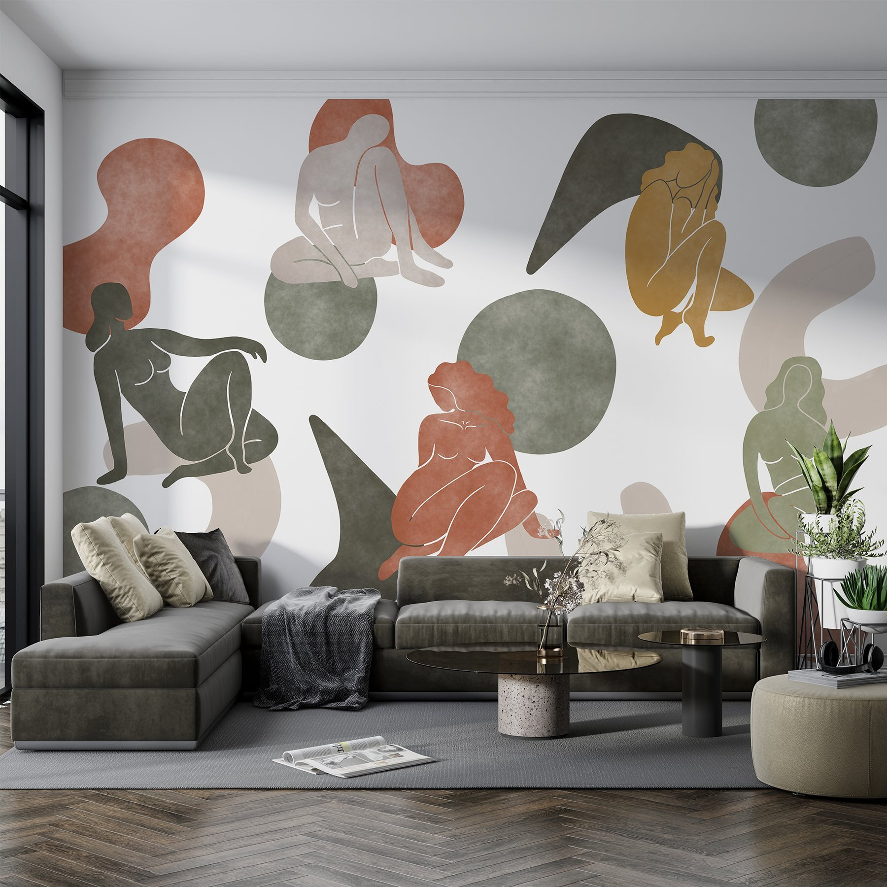 Transformați orice perete într-o galerie jucăușă cu această pictură murală cu femei adunate în cerc. Este ca o discuție artistică, care surprinde acele momente ușoare în care prietenii împărtășesc povești – cui nu i-ar plăcea această vibrație? Culorile blânde și formele abstracte invită la un sentiment de calm, stimulând în același timp creativitatea. Imaginați-vă că vă relaxați într-un colț confortabil, sorbind ceai și pierzându-vă în artă. Este o amintire frumoasă a conexiunii și a împuternicirii, perfectă pentru sufragerii, studiouri sau chiar un colț liniștit de lectură. Lasă această piesă să dea viață spațiului tău!