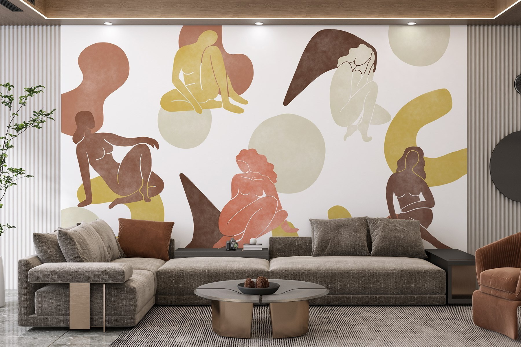Imaginați-vă că intrați într-o cameră și simțiți instantaneu că vibrația se ridică. Această pictură murală, cu reprezentarea sa jucăușă a femeilor care se relaxează și pozează, adaugă o notă frumoasă de căldură și personalitate oricărui spațiu. Nuanțele suave se îmbină perfect, creând o atmosferă liniștitoare, potrivită pentru relaxare după o zi lungă. Este ca și cum ai avea o piesă de artă care stârnește conversații – cine nu ar vrea să discute despre o astfel de pictură murală grozavă? Fie că găzduiți prieteni, fie că vă bucurați doar de momentele dvs. confortabile, cu siguranță vă va face să zâmbiți de fiecare dată când aruncați o privire. Perfectă pentru o cameră de zi sau chiar pentru un birou șic acasă, este vorba despre îmbrățișarea frumuseții formei umane într-un mod elegant, fără efort. Imaginați-vă doar – o privire și sunteți transportat într-o zi însorită, absorbind creativitatea și inspirația.