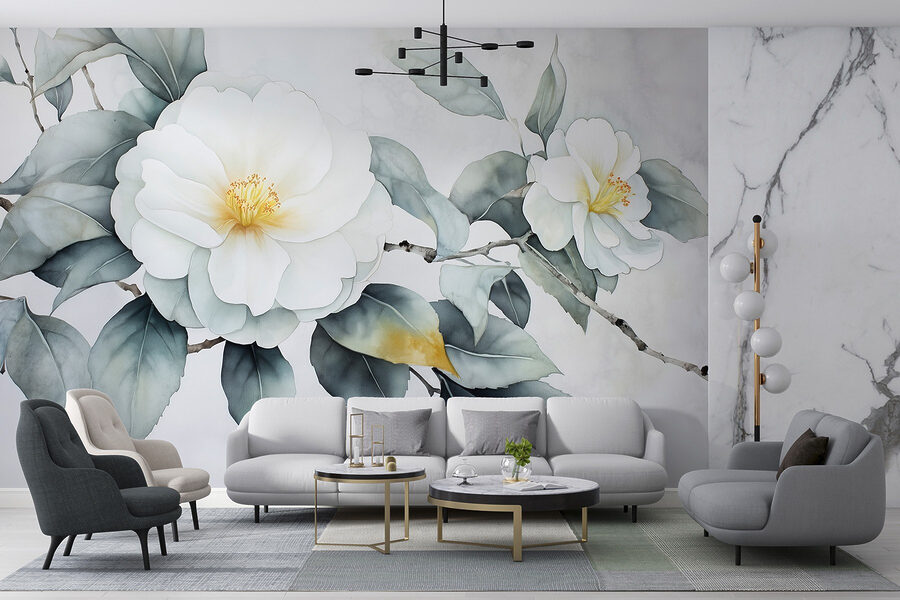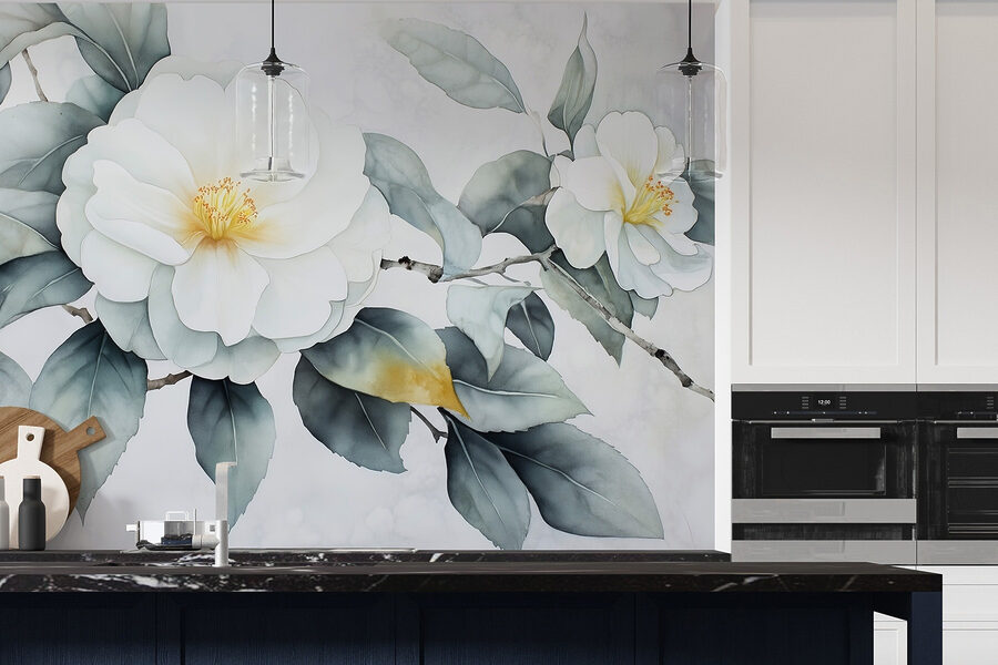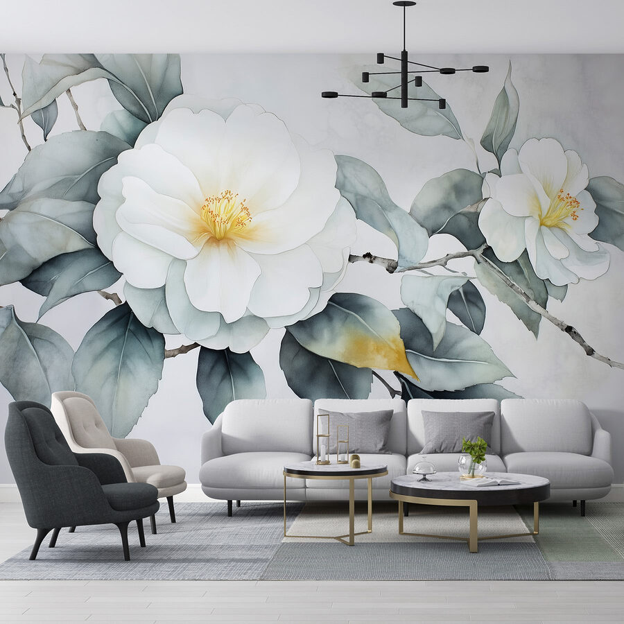 Transformați un perete plictisitor într-o evadare senină cu această frumoasă pictură murală cu flori albe și frunze verzi. Este ca și cum ai aduce o gură de aer proaspăt în interior, fără să fie nevoie să uzi nimic. Perfectă pentru acele zile în care puțină verdeață poate ridica starea de spirit, această pictură murală creează un fundal liniștitor pentru orice cameră. Imaginați-vă sorbindu-vă cafeaua de dimineață în timp ce priviți această frumusețe – este practic o mini-vacanță. În plus, este un bun subiect de conversație, mai ales atunci când oaspeții vă întreabă despre “grădina secretă”. Cine are nevoie de o transformare florală completă când această pictură murală este suficientă?