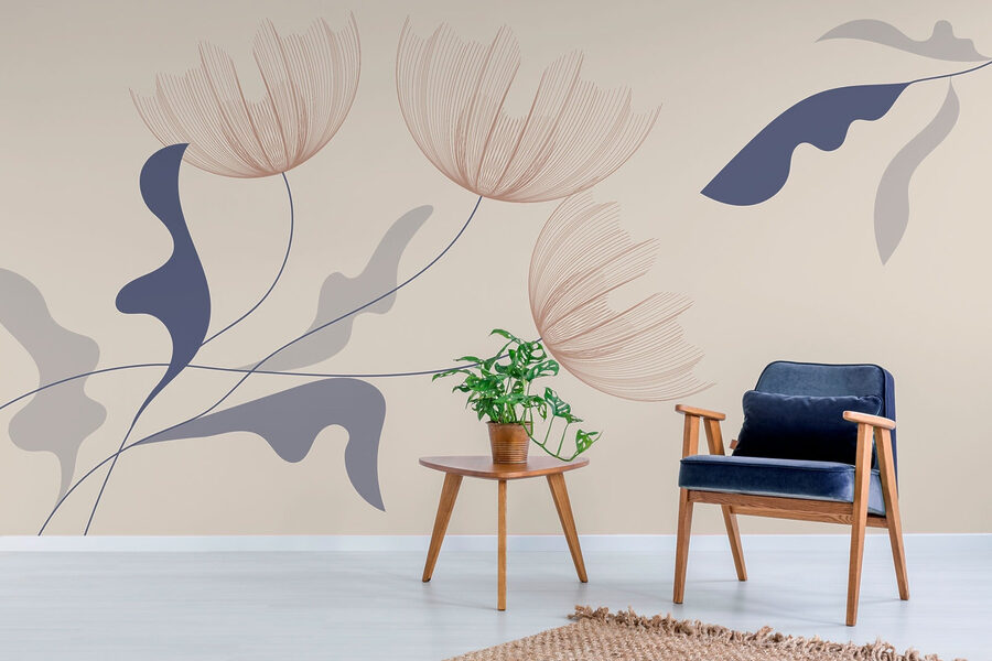 Transformarea unei camere într-un refugiu confortabil ține de micile detalii, iar aceste flori delicate în nuanțe blânde sunt exact ceea ce trebuie. Imaginați-vă că pășiți într-un spațiu în care pereții respiră un suspin de seninătate florală. Liniile blânde și culorile atenuate creează un sentiment de calm, ca o plimbare liniștită printr-o grădină înflorită dimineața devreme. Prietenii ar putea zăbovi puțin mai mult, atrași de frumusețea elegantă a picturii murale, în timp ce tu îți sorbi ceaiul preferat. Nu este doar decor; este un memento zilnic pentru a vă opri, a vă relaxa și a vă bucura de frumusețea momentelor de zi cu zi. Perfecte pentru o cameră de zi sau chiar un dormitor de vis, aceste picturi murale invită căldura și o notă de capriciu floral în orice spațiu.