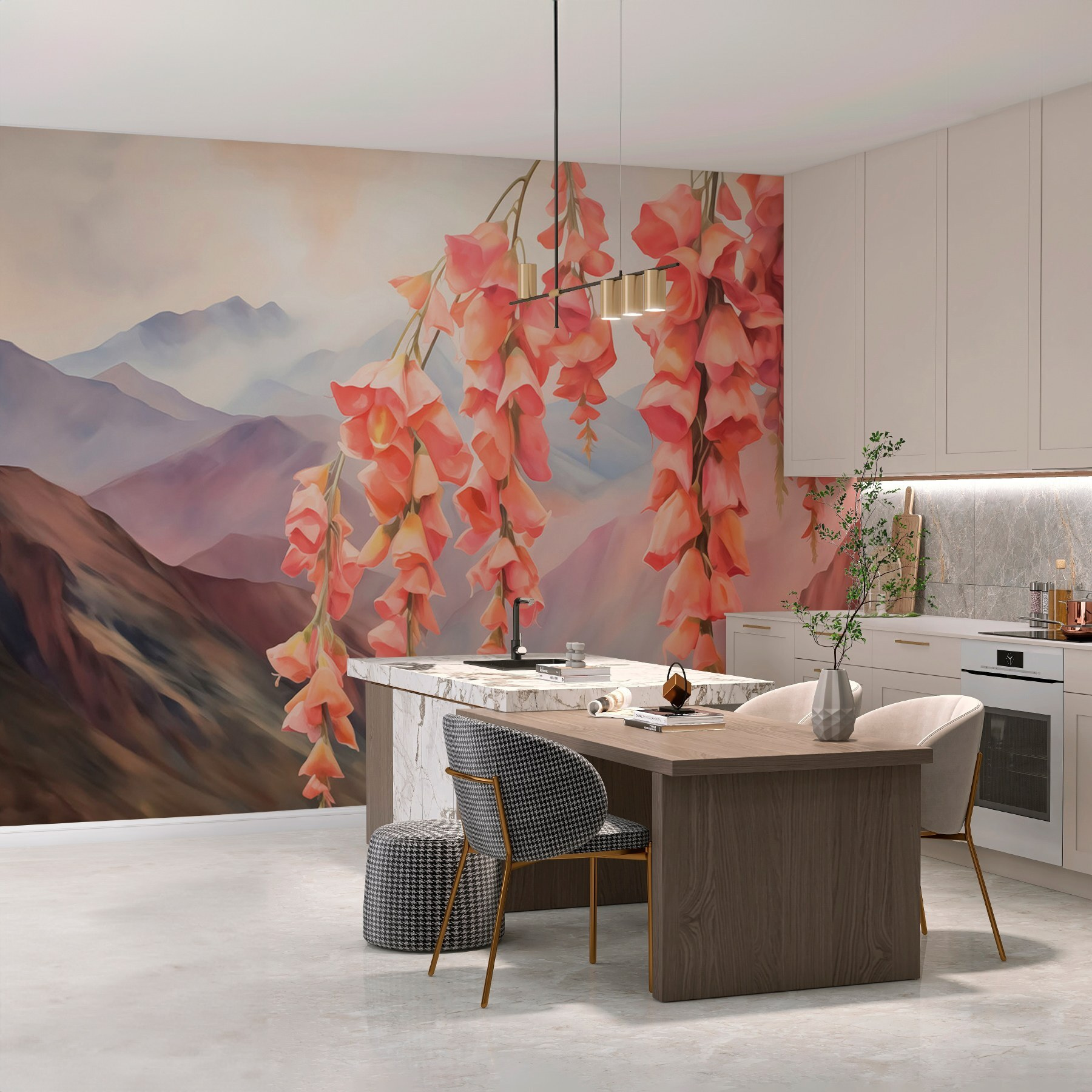 Transformați orice spațiu cu această pictură murală uimitoare cu o cascadă de flori care aproape că pare să se legene în bătaia vântului. Imaginați-vă că intrați într-o cameră și simțiți că tocmai ați pășit într-o grădină senină, chiar acolo pe perete. Nuanțele blânde de roz și fundalul moale creează un sentiment de calm, perfect pentru a transforma o zonă banală într-un refugiu confortabil. Este ca o doză zilnică de natură fără întreținere – nu este nevoie de udare. Puneți-o în camera de zi sau în dormitor și priviți cum se ridică starea de spirit. Prietenii îți vor complimenta cu siguranță noile vibrații florale, și cui nu-i place să discute despre un decor frumos? Imaginează-ți cum te relaxezi acasă și cum lași peretele acela să se transforme într-o sursă încântătoare de conversație.