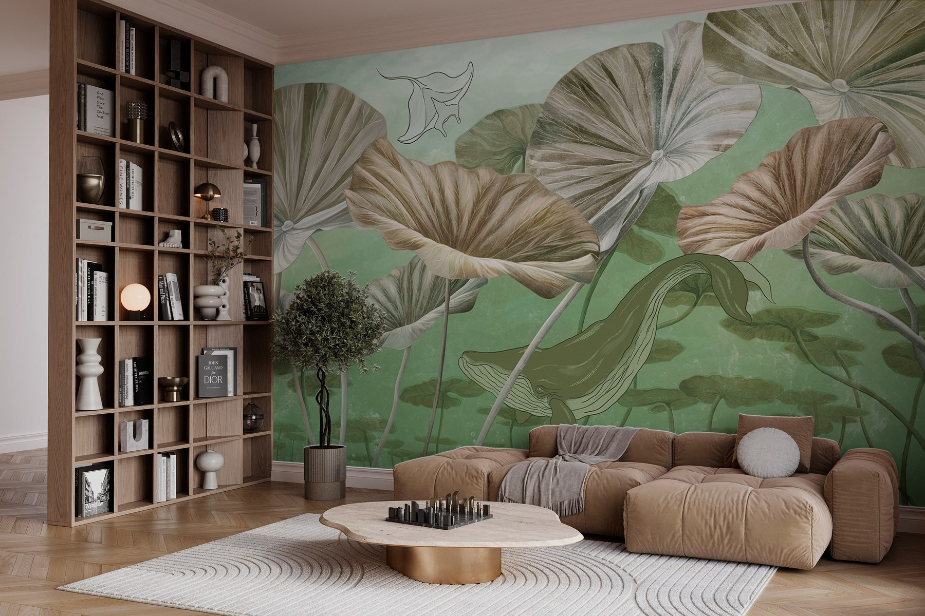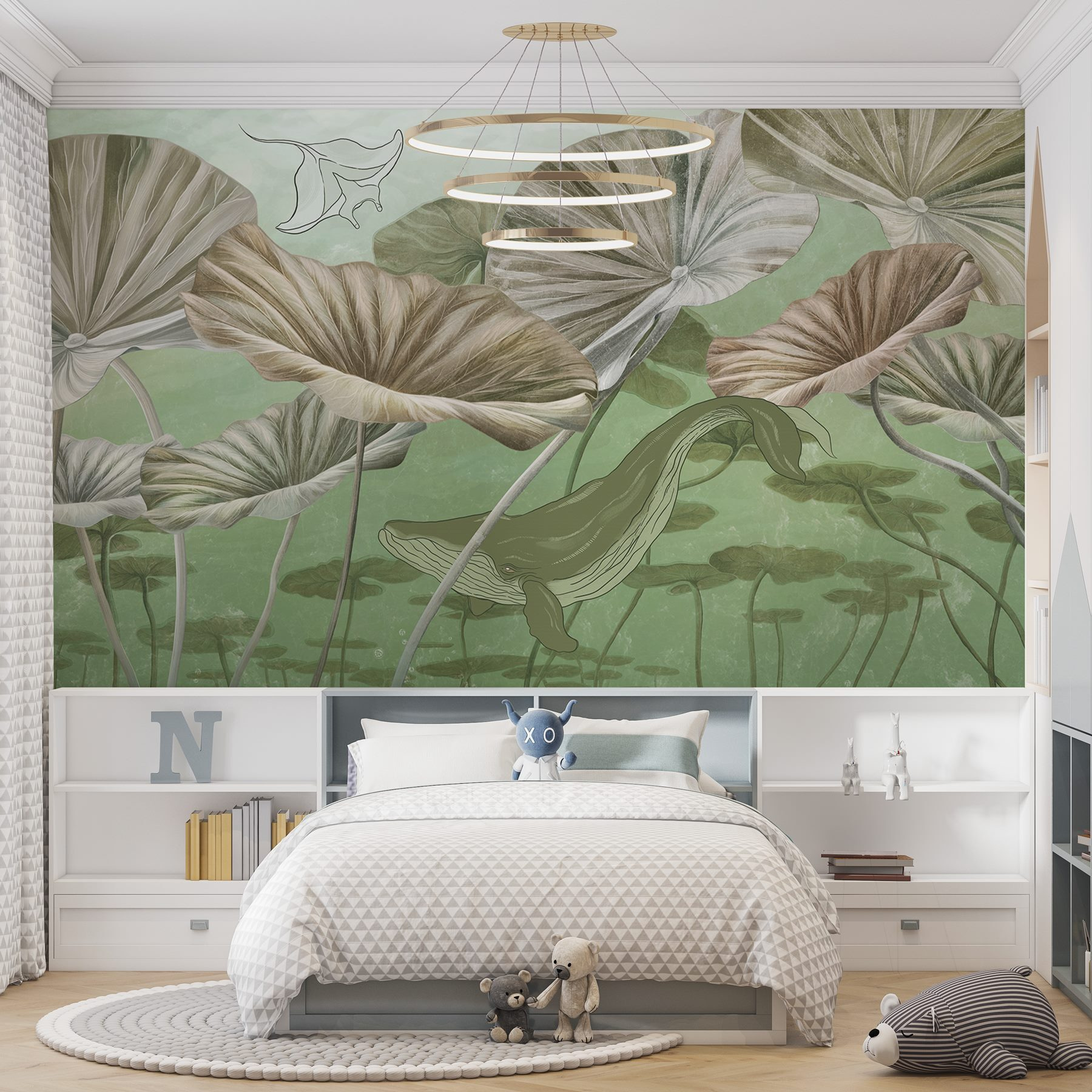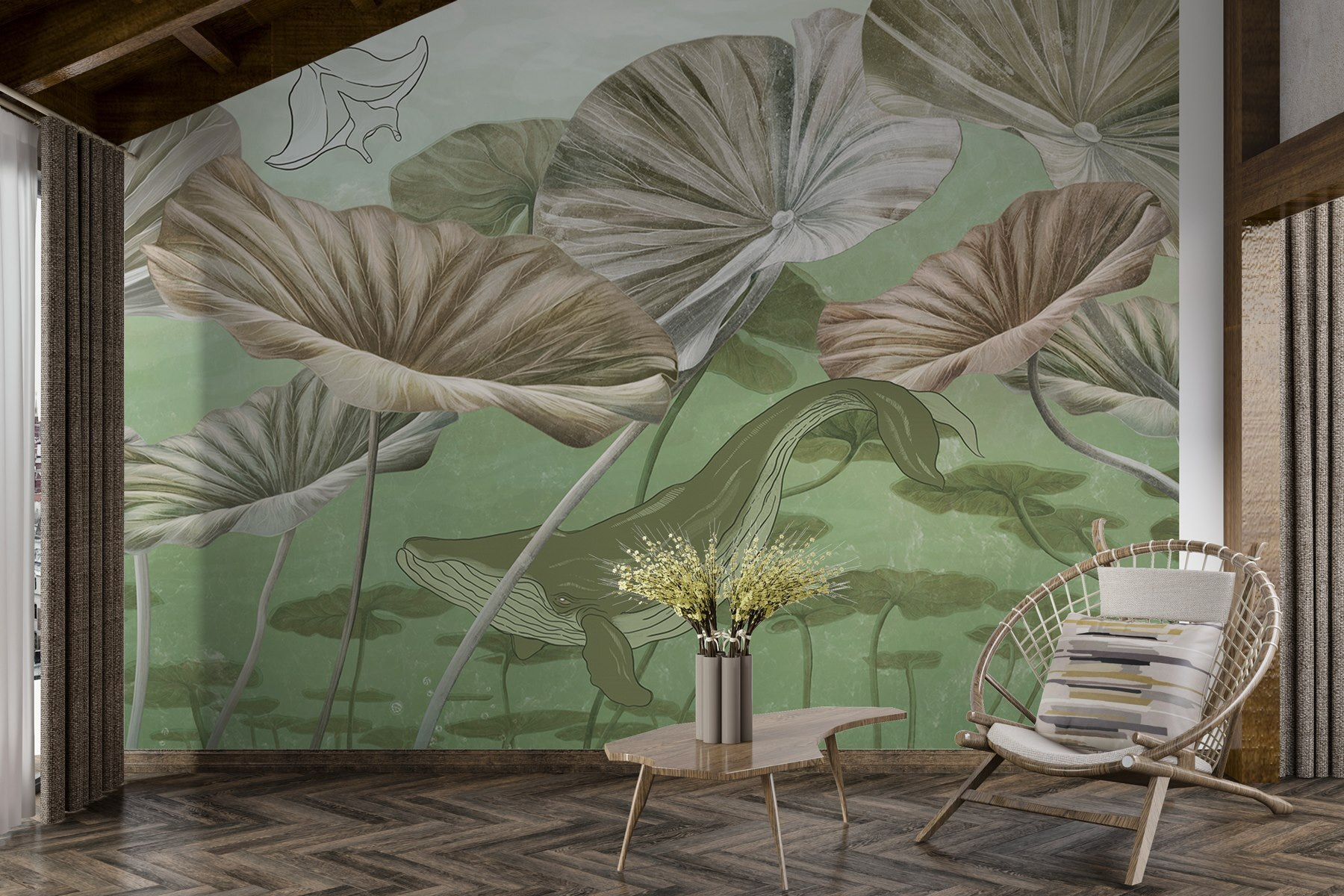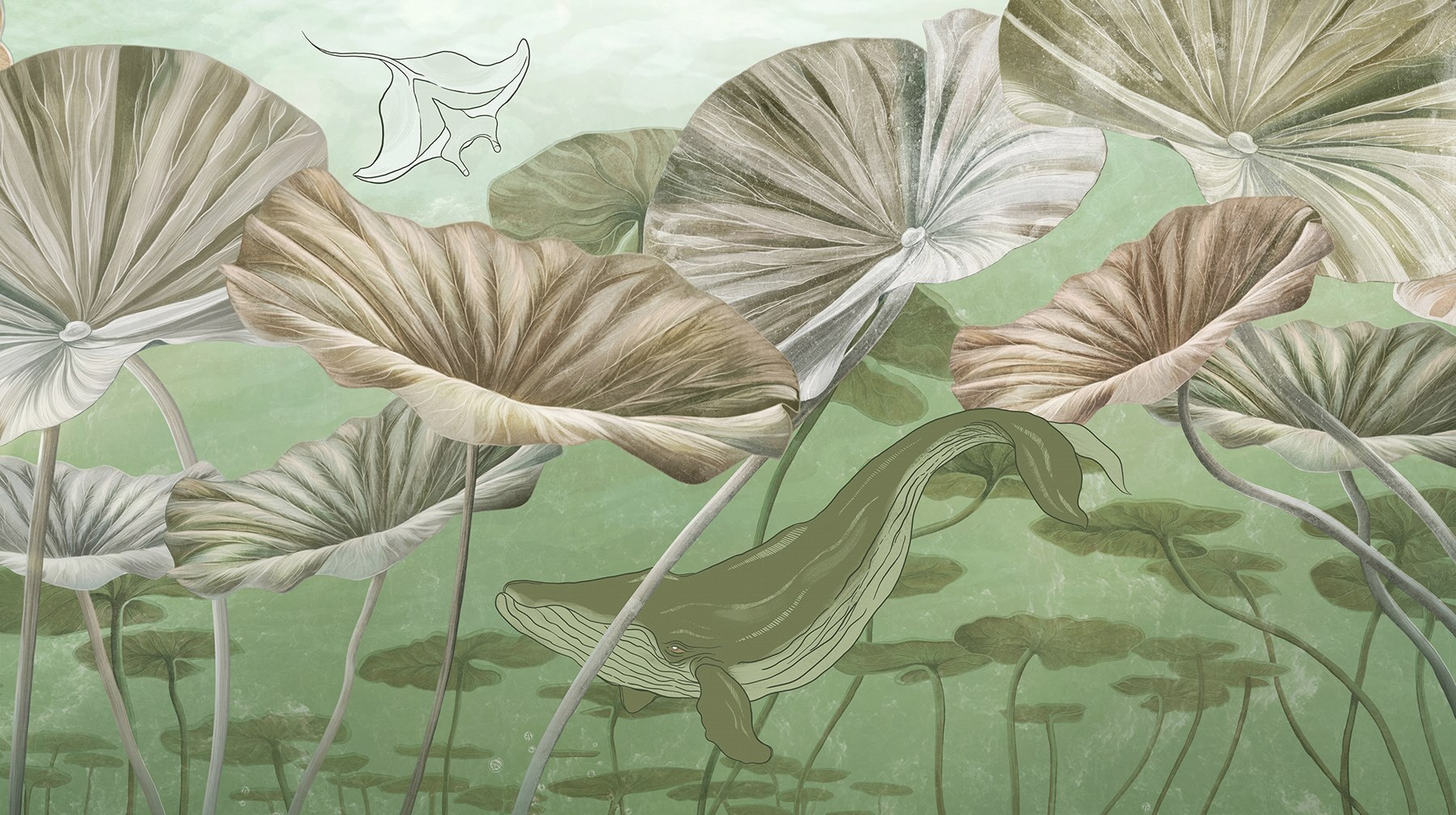 Scufundați-vă în vibrațiile senine ale acestei picturi murale uimitoare, care prezintă o balenă grațioasă alunecând prin apele liniștite. Imaginați-vă spațiul dvs. transformat într-un paradis subacvatic, unde fiecare privire pare o evadare liniștită. Verdele moale și tonurile pământii nu numai că calmează simțurile, dar invită și exteriorul înăuntru, creând o atmosferă relaxată. Perfectă pentru iubitorii de natură sau pentru oricine are nevoie de o atingere de calm, această pictură murală adaugă un strat de artă care invocă curiozitatea și mirarea. Este ca și cum ai avea o bucățică de ocean, chiar la tine acasă – nu este nevoie de apă sărată. Prezența blândă a balenei luminează fără efort o cameră, stârnind conversații și visări cu ochii deschiși. Așadar, de ce să nu lăsați această frumoasă vietate marină să aducă un sentiment de aventură pe pereții dumneavoastră?
