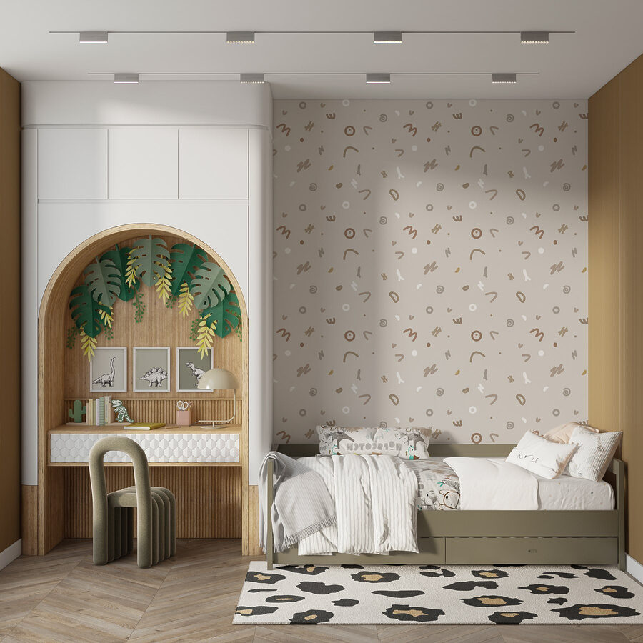 Înveseliți orice spațiu cu această pictură murală încântătoare, cu modele jucăușe de obiecte mici care aduc o notă de fantezie în cameră. Imaginați-vă intrând într-o cameră în care aceste forme fermecătoare dansează pe perete, stârnind bucurie și creativitate. Perfect pentru camera de joacă a unui copil sau pentru un colțișor de lectură confortabil, acest design adaugă un strop de distracție fără a strigă după atenție. Paleta de culori blânde creează un vibe cald, făcându-vă să vă simțiți ca acasă. Este ca o îmbrățișare pentru pereți! Lăsați această pictură murală să fie pânza inspirației zilnice și a viselor fără sfârșit.