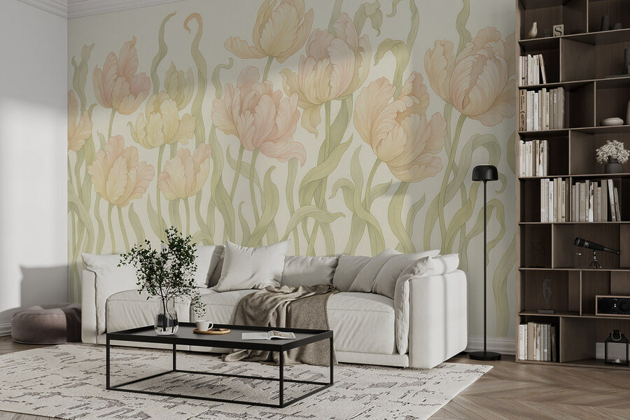 Transformați un perete plictisitor într-un tărâm al minunilor înflorit cu această pictură murală uluitoare cu lalele delicate în culori blânde. Imaginați-vă că pășiți în fiecare zi într-o grădină senină, unde aceste flori minunate se leagănă ușor într-o briză imaginară. Pastelurile moi invită la căldură, făcând ca orice cameră să se simtă confortabilă și primitoare, perfectă pentru cafeaua de dimineață sau pentru relaxare după o zi lungă. Prietenii vor crede că aveți o grădină secretă ascunsă. Este ca o îmbrățișare a naturii pe peretele tău, amintindu-le tuturor că frumusețea este într-adevăr la o privire distanță. Perfect pentru orice spațiu care tânjește după un strop de farmec!