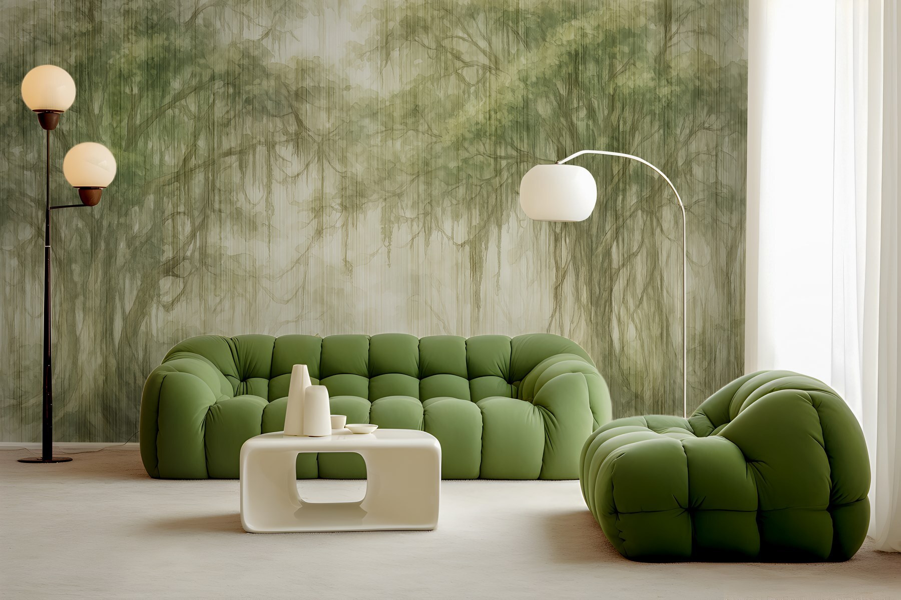 Imersați-vă spațiul în liniște cu această pictură murală încântătoare a unei păduri cețoase. Este ca și cum ați păși într-un vis în care copacii șoptesc secrete și aerul este plin de mister. Imaginați-vă sorbindu-vă cafeaua de dimineață, înconjurați de nuanțele blânde de verde și maro, în timp ce lumina soarelui pătrunde printre ramurile cețoase. Această pictură murală adaugă o notă de calm naturii, făcând chiar și cele mai aglomerate zile să pară puțin mai lente. Perfectă pentru o cameră de zi confortabilă sau un dormitor senin, aceasta invită la visare cu ochii deschiși și rămâne perfect nepăsătoare. Cine nu și-ar dori o escapadă senină chiar la el acasă?