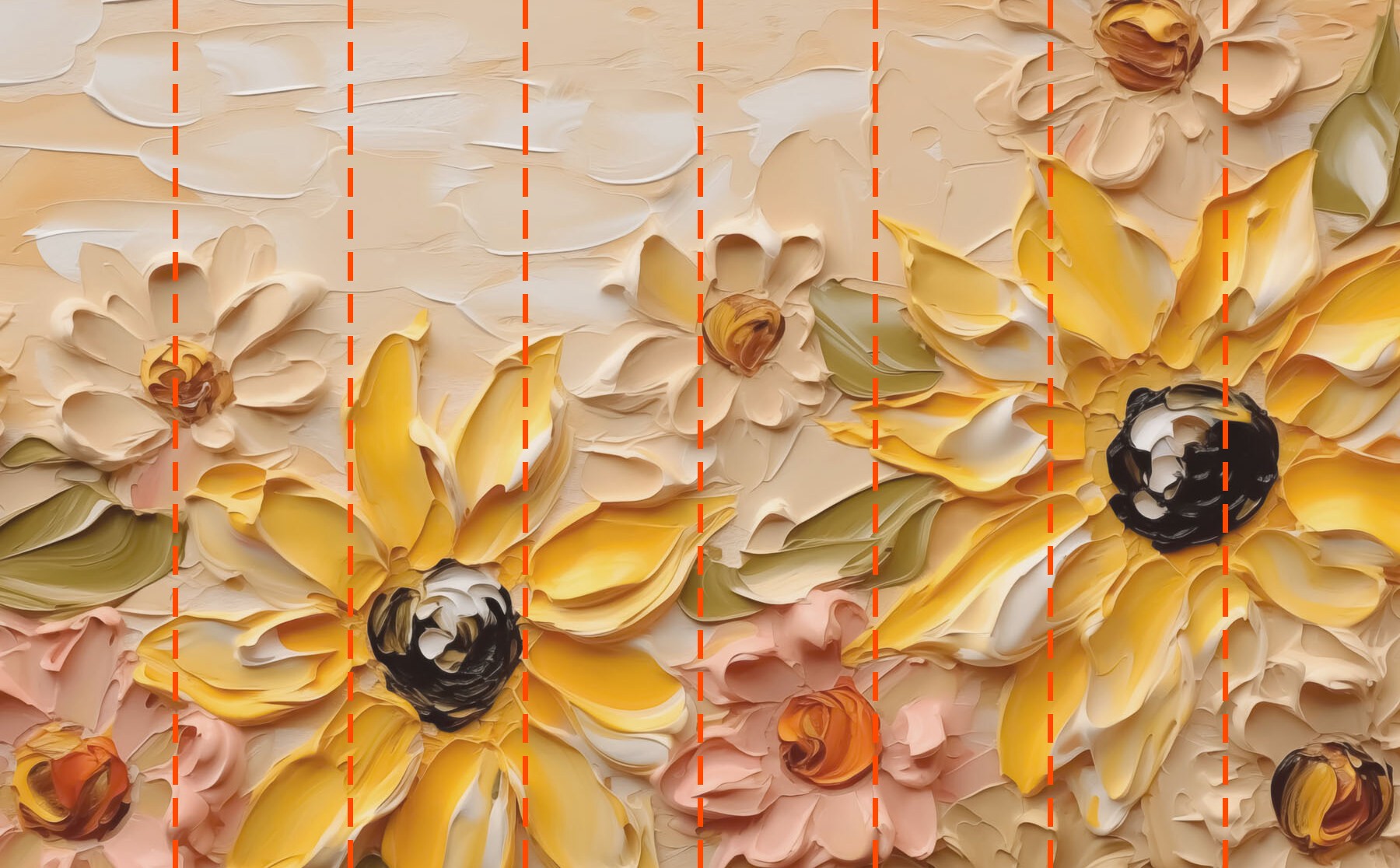 Wallpaper-ul dvs. va fi pregătit în funcție de dimensiunile pe care le-ați furnizat în timpul procesului de comandă. Pânza va fi împărțită în secțiuni convenabile, fiecare cu o lățime de până la 50 cm.