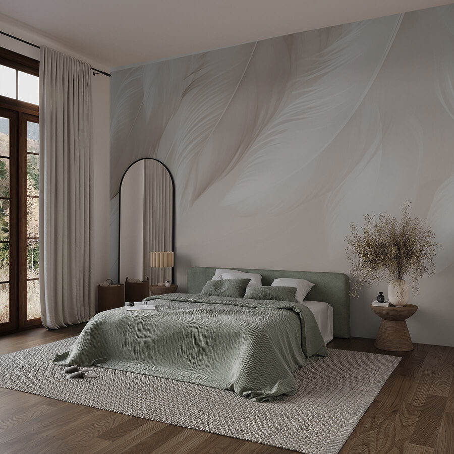 Imaginați-vă că pășiți într-o cameră în care penele moi par să plutească grațios pe pereți. Această pictură murală, “Pene moi cad ușor în cascadă”, aduce cu adevărat un sentiment de calm și seninătate în orice spațiu. Este ca un memento blând pentru a respira adânc și a renunța la haosul zilei. Culorile subtile creează o atmosferă confortabilă, perfectă pentru relaxare sau pentru un spațiu de lucru creativ. Prietenii s-ar putea să se oprească și să-l admire, poate chiar să vă întrebe dacă aveți un fel de vibe zen influențat de pene. Nu este doar decor; este o bucățică de liniște care invită la căldură și la conversație. Perfect pentru cei care apreciază atingerile unice în casa lor!