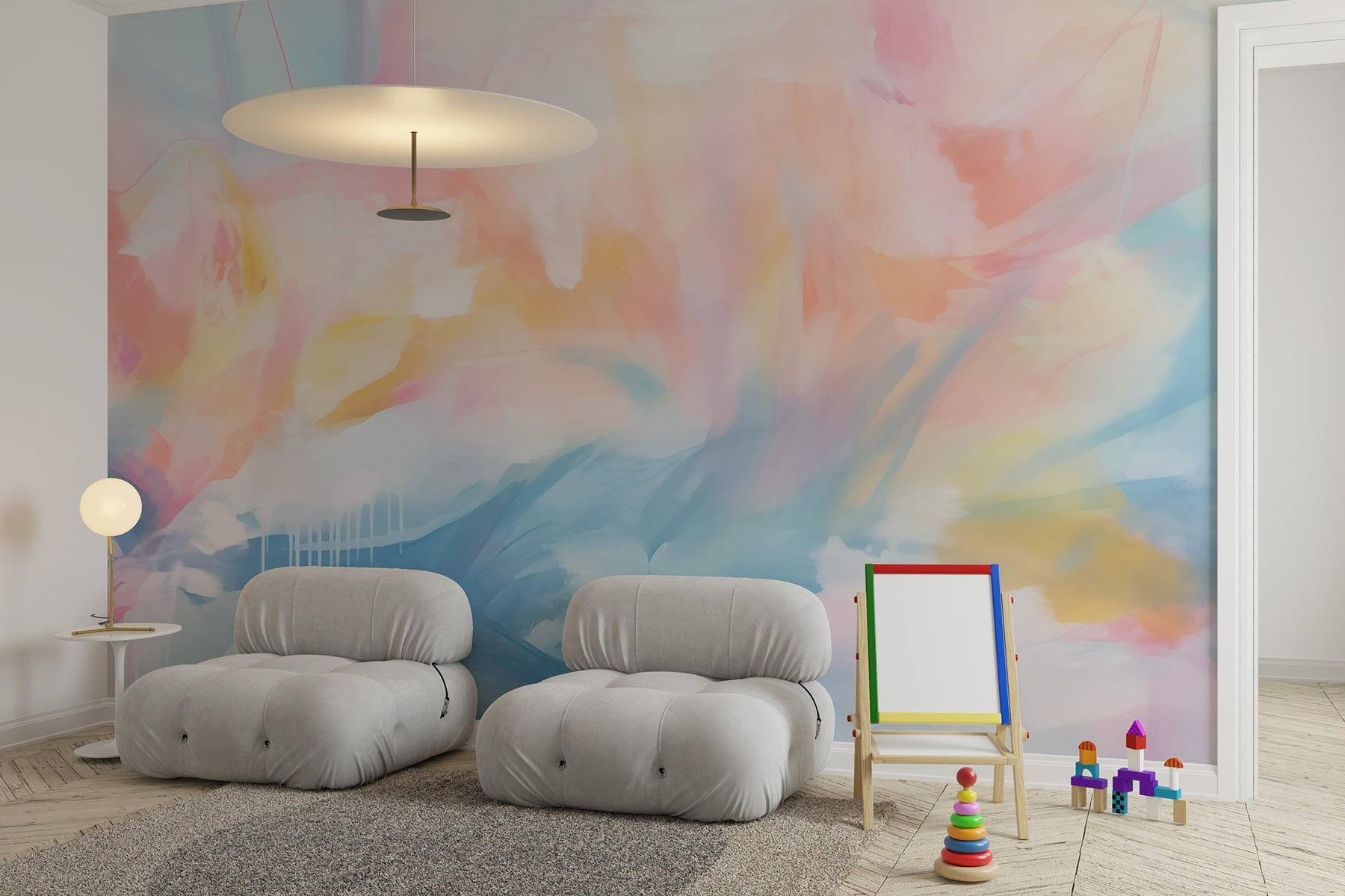 Imaginați-vă că intrați într-o cameră care seamănă cu un cer de dimineață încântător, unde fiecare nuanță de albastru, roz și piersică dansează pe pereți. Această pictură murală aduce un strop de fantezie și bucurie în orice spațiu, la fel ca o briză ușoară într-o zi însorită. Imaginați-vă-o încadrând colțul dvs. preferat de lectură sau fiind fundalul capricios pentru întâlnirile de familie. Nu va sta doar acolo – este ca acel prieten care aduce toate vibrațiile bune. Fiecare privire aruncată asupra acestei opere de artă ar putea declanșa un mic vis cu ochii deschiși, trimițându-vă în mini-aventuri fără să părăsiți vreodată casa. De asemenea, este o sursă perfectă de conversație, oamenii oprindu-se să admire nuanțele senine. Transformă-ți pereții și lasă-ți casa să spună o poveste colorată.