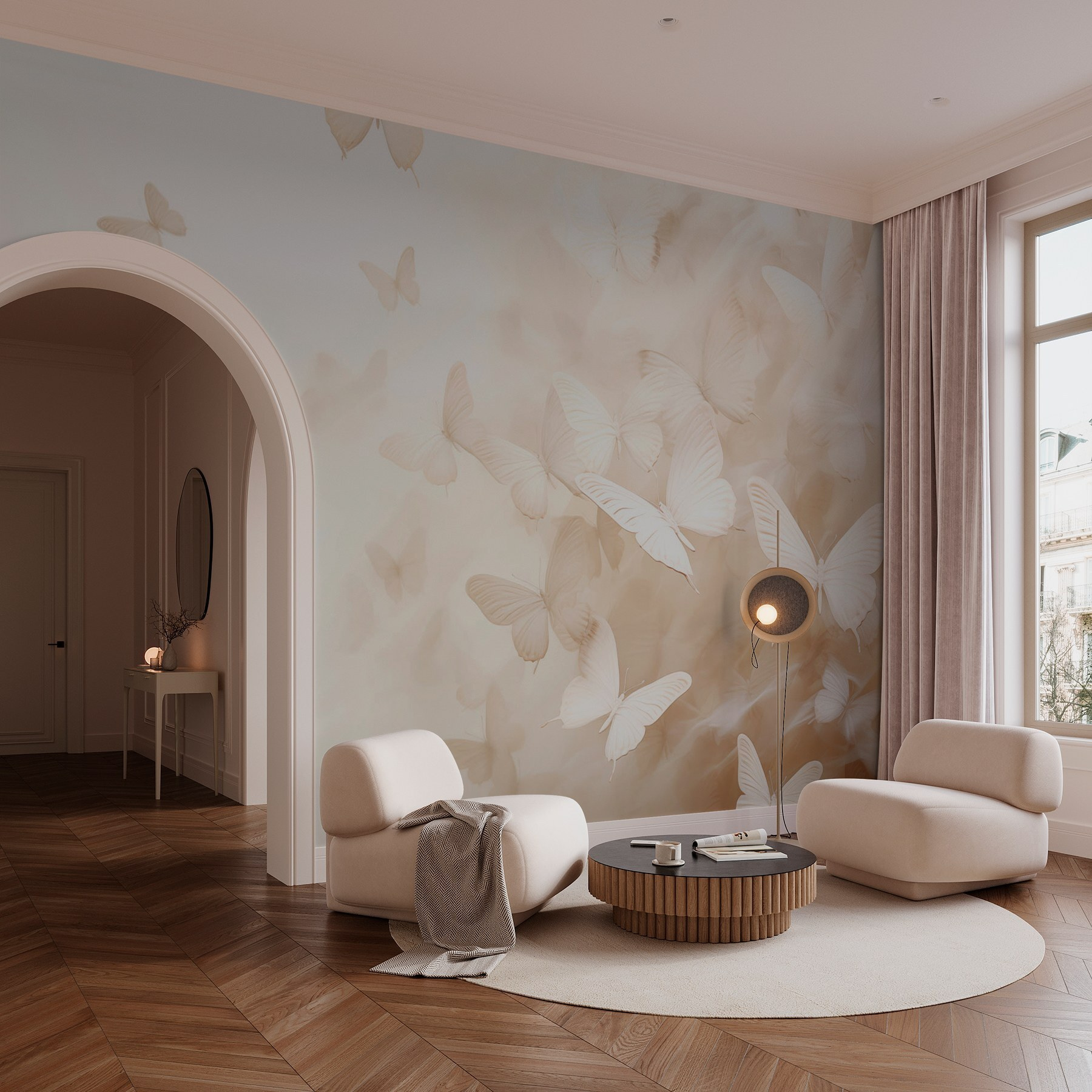Imaginați-vă un colț de lectură confortabil sau un dormitor liniștit, unde aceste desene ușoare și fluide adaugă o notă liniștitoare. Fiecare privire aruncată asupra fluturilor stârnește un sentiment de libertate și uimire, ca și cum aceștia și-ar putea lua zborul în orice moment. Prietenii se vor plimba înăuntru, se vor opri și vor suspina – este o mică evadare dulce care abia așteaptă să se întâmple. Ce mod încântător de a face orice perete să pară viu!