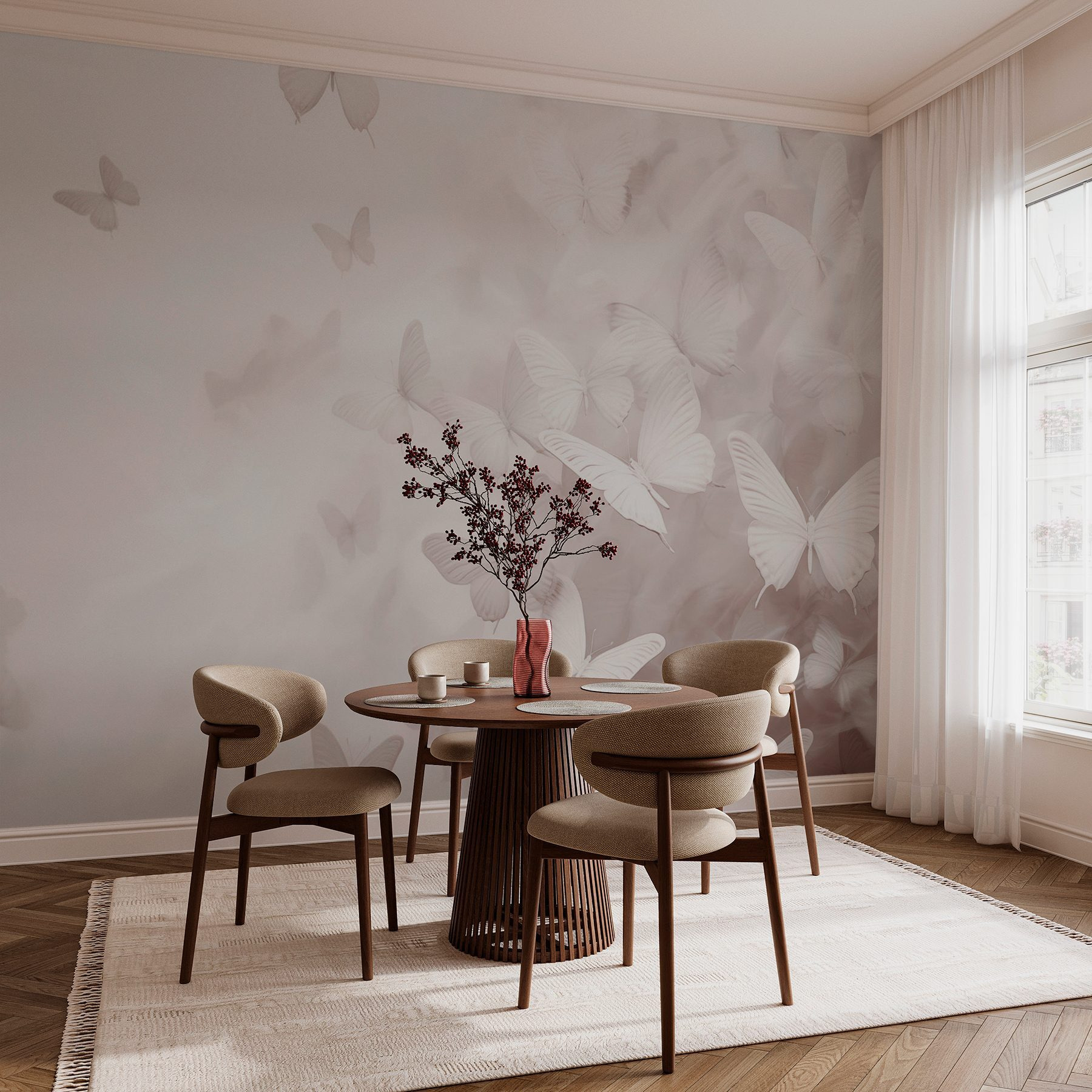 Transformați orice cameră într-o evadare senină cu această pictură murală de vis cu fluturi care își iau zborul. Imaginați-vă că pășiți într-o lume în care aceste creaturi delicate dansează pe un fundal moale, cețos. Este ca un memento blând că frumusețea poate fi găsită în momentele de zi cu zi. Imaginați-vă un colț de lectură confortabil sau un perete de dormitor liniștit, unde puteți evada din haosul vieții – această pictură murală face exact asta. Este perfectă pentru a crea o atmosferă liniștită sau pentru a stârni un pic de fantezie. Cine nu și-ar dori să simtă acea bucurie fluturând de fiecare dată când trece pe acolo? Este timpul să lăsați fluturii să își întindă aripile și să vă luminați spațiul!