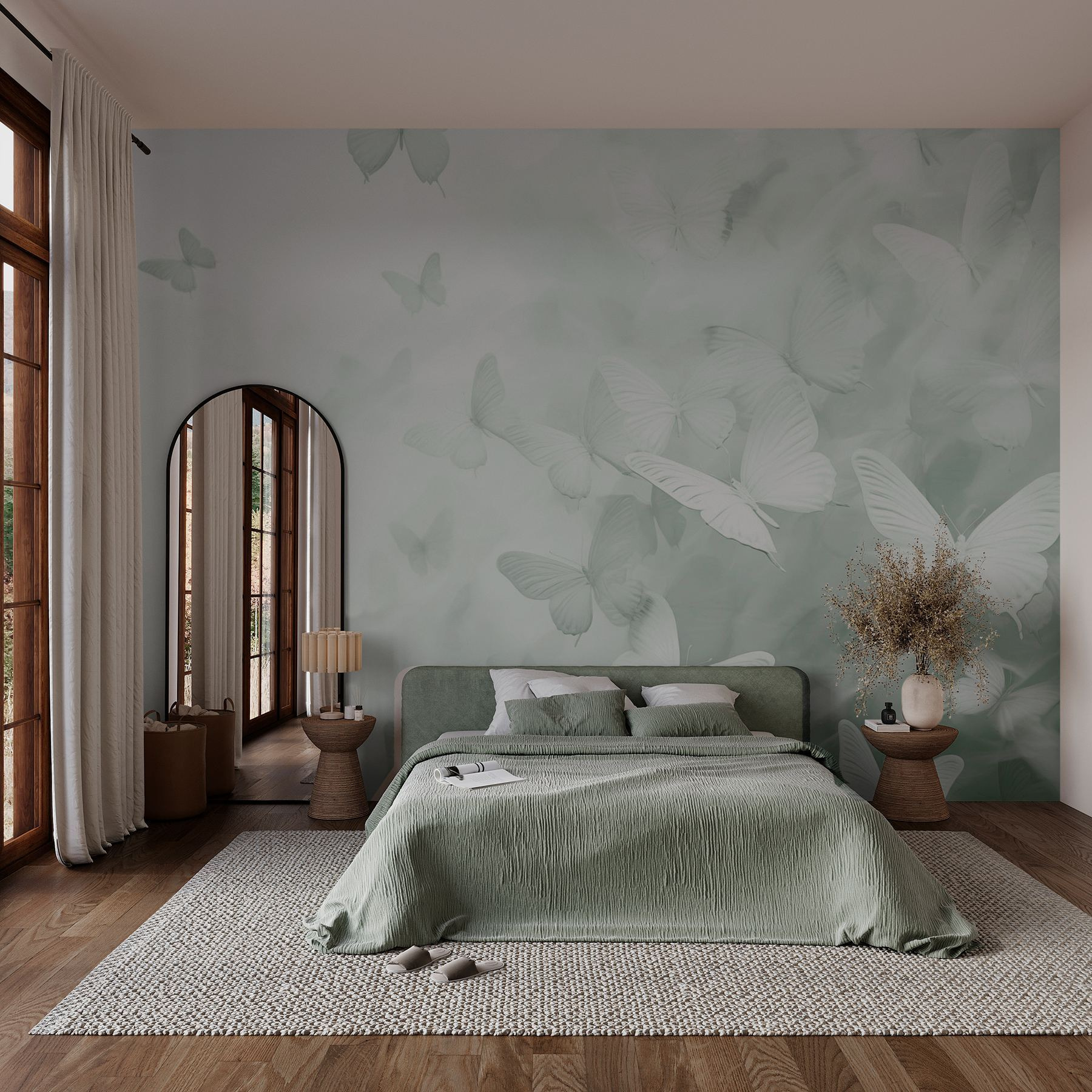 Transformați-vă spațiul cu această pictură murală încântătoare, care prezintă o rafală de fluturi care își iau zborul. Este ca și cum ați păși într-un vis senin – imaginați-vă sorbindu-vă cafeaua de dimineață înconjurată de aceste creaturi delicate, plutind ușor pe un fundal liniștit. Perfectă pentru un colț de lectură confortabil sau pentru a înveseli un hol, această artă aduce o lejeritate care se simte în același timp răcoritoare și liniștitoare. Prietenii vor zâmbi și vor comenta despre modul în care adaugă o atmosferă aerisită casei tale. Este vorba despre acele mici atingeri care fac viața mai frumoasă, nu-i așa? Cui nu i-ar plăcea un pic de capriciu care să zburde în jur?