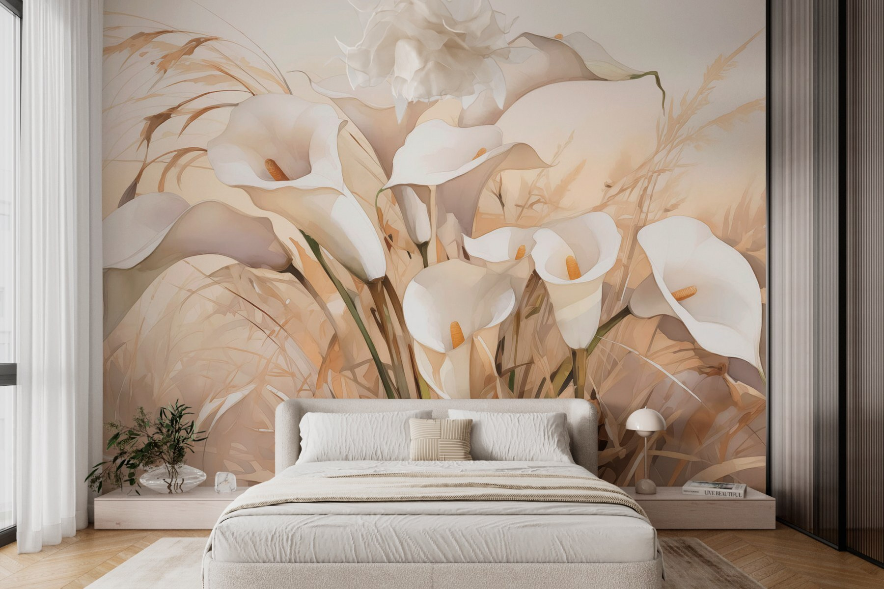 Transformați-vă spațiul cu această pictură murală încântătoare cu un grup de flori albe elegante. Imaginați-vă că pășiți într-o grădină senină, unde aceste flori aduc o atingere a naturii chiar în casa dvs. Culorile suave și curbele delicate ale fiecărei petale creează o atmosferă de calm și relaxare. Este ca și cum ai avea un mini sanctuar pe perete! Prietenii vor trece pe aici și s-ar putea să vă treziți discutând despre cum florile par să aducă exteriorul în casă. Perfectă pentru un living confortabil sau un dormitor liniștit, această pictură murală șoptește frumusețe și pace.
