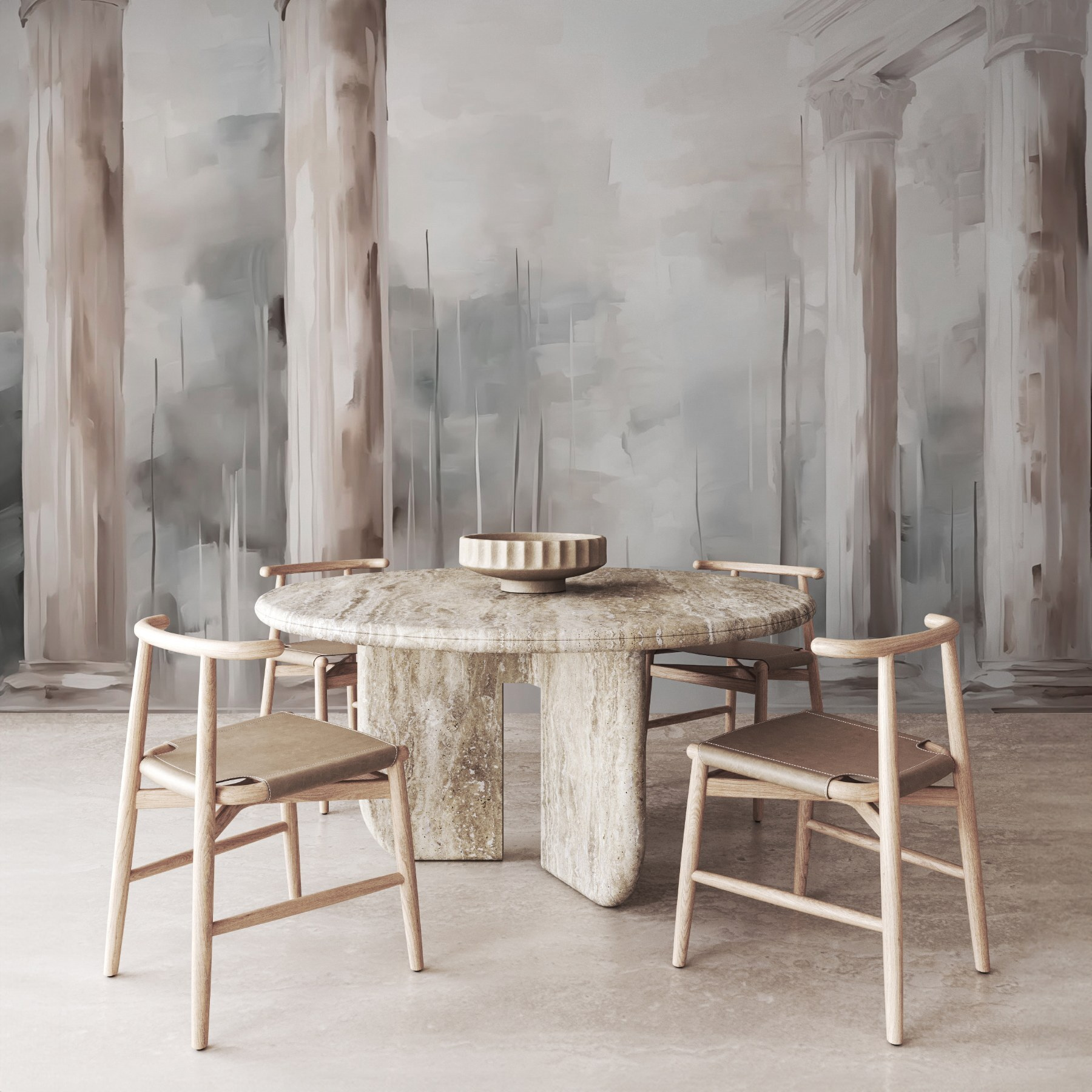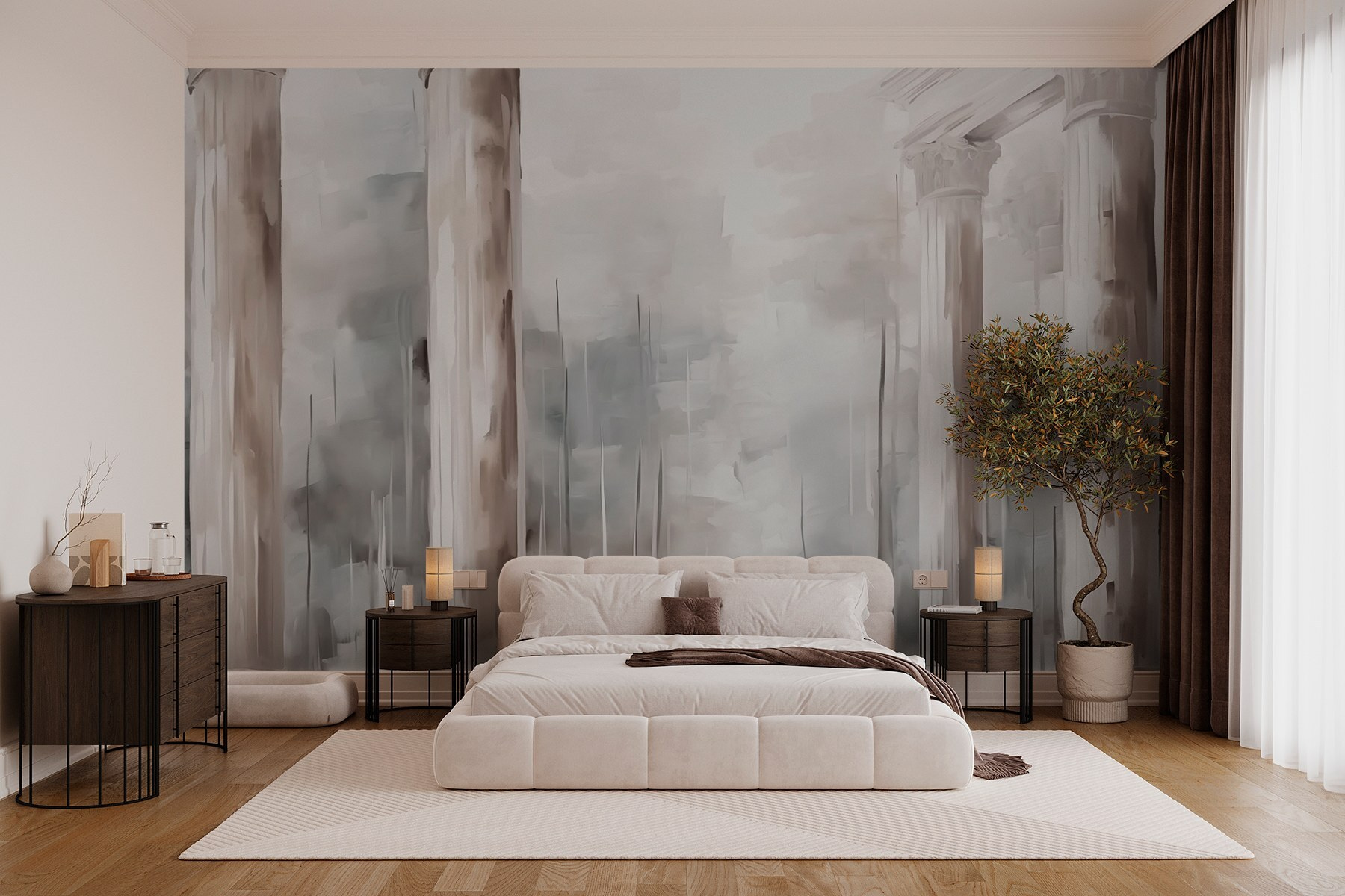 Transformarea unui spațiu poate fi la fel de simplă ca adăugarea unei picturi murale, iar aceasta este un adevărat spectacol. Imaginați-vă că pășiți într-o cameră în care coloanele mari se înalță spre cer, invitându-vă într-o lume senină. Nuanțele blânde și visătoare creează un fundal liniștitor, perfect pentru a savura o cafea sau pentru a citi o carte bună. Este ca și cum ai avea o mică bucată de arhitectură clasică chiar pe pereții tăi. Prietenii vor veni, vor admira pictura murală și se vor întreba dacă ați devenit în secret un cunoscător al artei. Cine are nevoie de galerii de artă luxoase când această frumusețe poate stârni vise cu ochii deschiși în propria sufragerie?