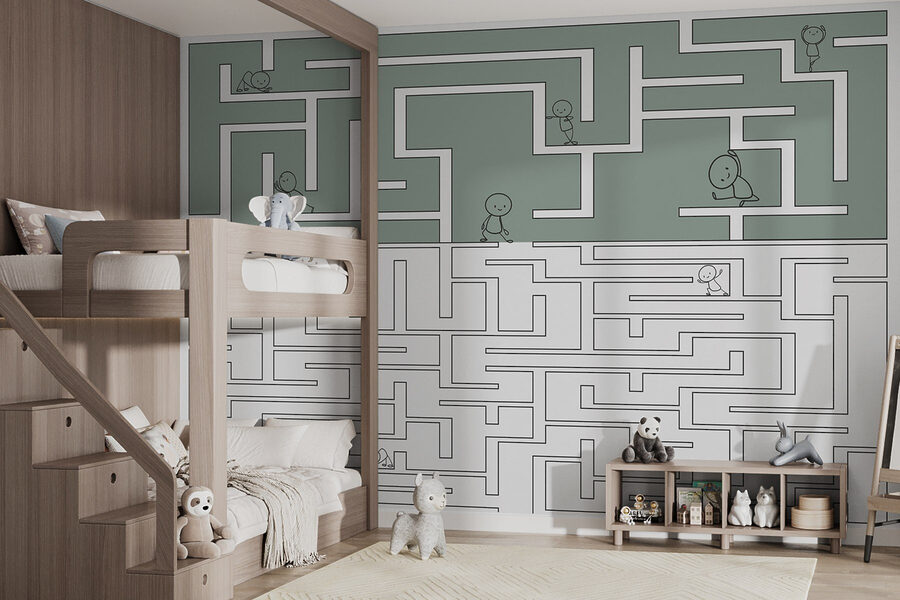Transformați spațiul unui copil într-o aventură jucăușă cu această pictură murală capricioasă care prezintă un joc de labirint și personaje de desene animate vesele. Imaginați-vă că cei mici își trasează cu nerăbdare degetele de-a lungul căilor în timp ce se prefac că își ghidează drumul prin tot felul de escapade amuzante. Paleta de culori suave păstrează calmul, în timp ce designul dinamic al labirintului stârnește curiozitatea. Nu este doar decor; este un fundal pentru jocul imaginativ și povestirea. Perfectă pentru dormitoare sau camere de joacă, această pictură murală invită la râs, creativitate și puțină competiție prietenoasă. Priviți cum copiii se pierd în distracție!