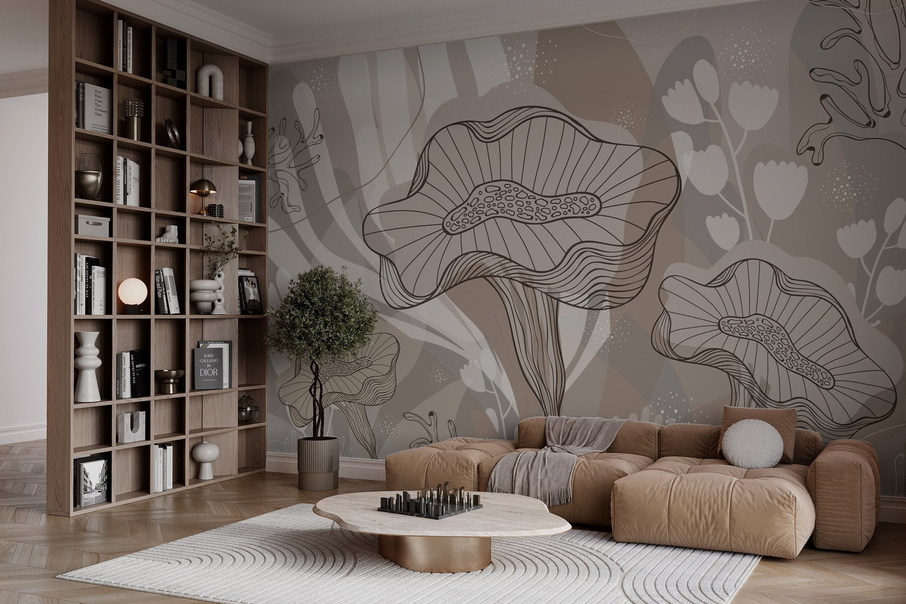 Transformați orice spațiu într-o grădină confortabilă cu această pictură murală fermecătoare cu flori și plante capricioase. Linia de lucru blândă și culorile moi creează o atmosferă liniștitoare care șoptește relaxare. Imaginați-vă sorbind ceai în timp ce visați cu ochii deschiși în căldura acestei îmbrățișări florale. Este ca și cum ai avea un pic de natură în interior – perfect pentru cei care iubesc o gură de aer proaspăt fără polenul deranjant. Fie că este pentru o cameră de zi, un dormitor sau chiar un colțișor creativ, această pictură murală invită la creativitate și conversație. Este o modalitate încântătoare de a vă înveseli pereții și starea de spirit!