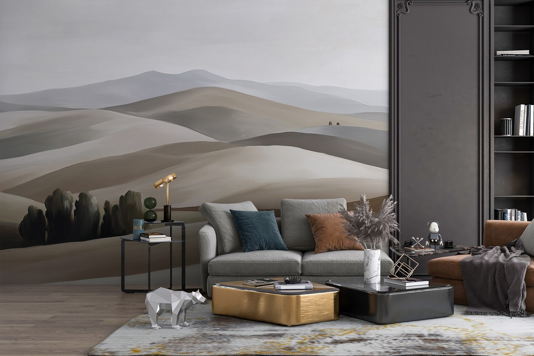 Transformați orice perete într-o evadare senină cu această frumoasă pictură murală cu dealuri și copaci. Acesta aduce aerul liber chiar în spațiul dvs. de locuit – perfect pentru a visa cu ochii deschiși sau pur și simplu pentru a vă relaxa după o zi lungă. Imaginați-vă sorbind o cafea în timp ce vă bucurați de tonurile moi, atenuate, care creează o atmosferă liniștită. Această pictură murală nu face doar o declarație, ci șoptește calm. Este ca și cum ai avea un peisaj personal care schimbă vibrația camerei tale, făcând-o să se simtă deschisă și proaspătă. Perfect pentru iubitorii de natură sau pentru oricine dorește să adauge o notă de liniște casei sale.