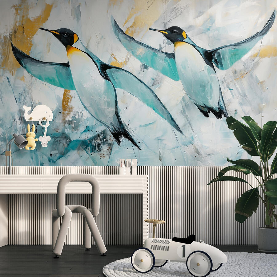 Scufundați-vă în lumea capricioasă a pinguinilor zburători cu această pictură murală uimitoare. Este ca și cum ai oferi pereților tăi o evadare jucăușă din realitate. Imaginați-vă acești micuți fermecători zburând pe un cer vibrant, cu aripile larg deschise și doar un strop de culoare care aduce căldură în orice cameră. Este perfect pentru a adăuga o notă de distracție unei camere pentru copii sau chiar o declarație unică într-un spațiu de locuit confortabil. Imaginați-vă sorbind cafea în timp ce oaspeții dvs. se minunează de artă – toată lumea are nevoie de un starter de conversație, nu-i așa? Această pictură murală nu este doar un decor; este un stimulent pentru starea de spirit și un memento că viața înseamnă să te bucuri de lucrurile mărunte, precum pinguinii care aleargă după vise!