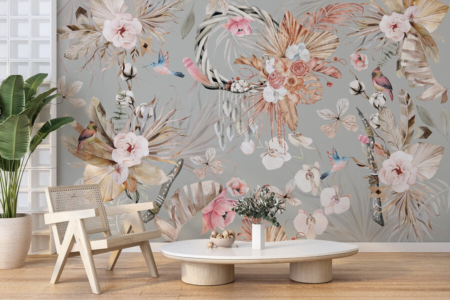 Transformarea unui spațiu este la fel de ușoară ca adăugarea acestei picturi murale, “Fototapet Wallpaper with flowers and feathers”. Este ca și cum ai aduce o grădină înăuntru, mai puțin cutia de udat. Cu flori moi și pene delicate care dansează pe un fundal liniștitor, ar putea face pe oricine să uite de treburi pentru o clipă. Imaginați-vă sorbind ceai, confortabil cu o carte, în timp ce păsări vibrante zboară deasupra – serios, este practic o mini-vacanță. Perfectă pentru un living sau un dormitor de vis, această pictură murală invită la un sentiment de calm și creativitate. Oferiți pereților dvs. o personalitate proaspătă, care face ca fiecare oaspete să se oprească și să spună: “Wow, de unde ai luat asta?” La urma urmei, spațiile ar trebui să se simtă vii.