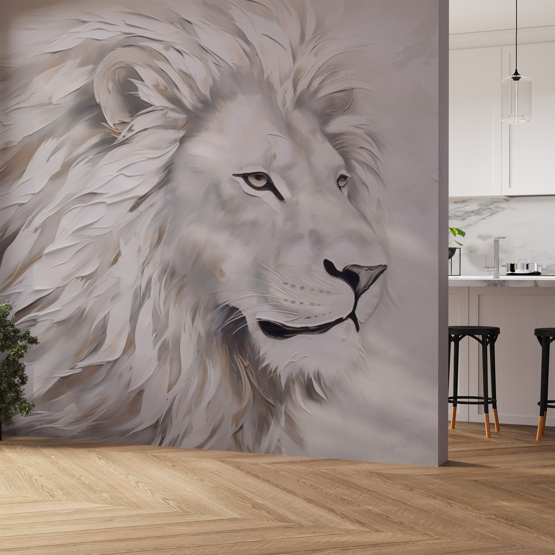 Intrați într-o lume în care un leu alb senin ocupă locul central, aducând fără efort o notă de eleganță sălbatică în orice cameră. Această pictură murală nu este doar o piesă de artă; este o declarație. Imaginați-vă că treceți pe lângă ea în fiecare zi, simțind forța liniștită emanată de acești ochi blânzi. Coama leului, care curge ca niște nori moi, ar putea inspira visuri cu ochii deschiși despre aventuri în ținuturi îndepărtate sau seri confortabile petrecute amintindu-și de călătoriile sălbatice ale vieții.