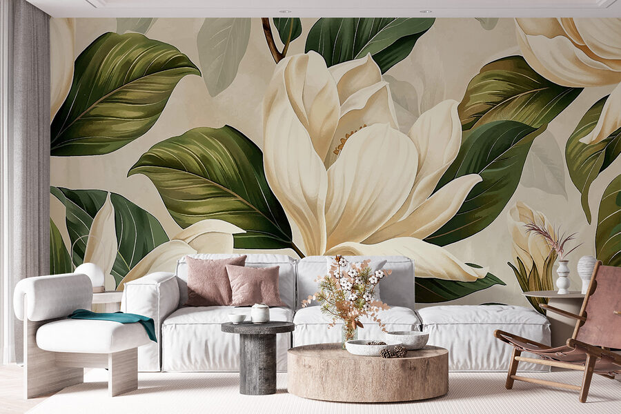 Căutați să dați o notă aparte pereților? “Fototapet w07901” ar putea fi noul tău cel mai bun prieten! Imaginați-vă asta: Un amestec uimitor de verdeață luxuriantă și flori cremoase care strigă proaspăt și vibrant. Imaginați-vă că aveți o bucată din frumusețea naturii chiar în camera dvs. de zi – sau poate în dormitor, pentru acele vibrații confortabile și visătoare. Efectul 3D te face să simți că florile îți șoptesc cuvinte dulci.