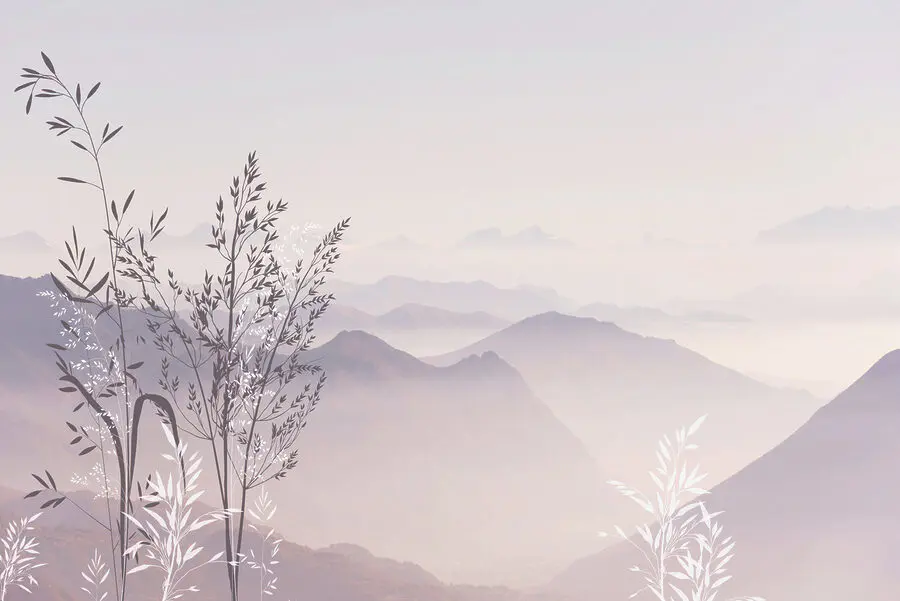 Imaginează-ți-o în sufragerie sau în dormitor – te simți confortabil cu o ceașcă de ceai, lăsându-ți gândurile să rătăcească prin acel peisaj pașnic, stratificat. În plus, frunzișul delicat din prim-plan adaugă o notă artistică frumoasă! Este ca și cum ai avea o fereastră către o lume liniștită, netulburată… un fundal perfect pentru momentele tale de meditație sau doar pentru relaxare după o zi lungă.