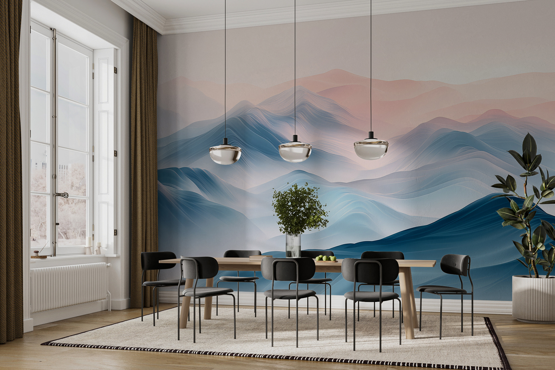 Liniile moi, fluide și gradațiile blânde ale acestei picturi murale fac ca orice spațiu să se simtă expansiv și aerisit. Nu este doar un tapet, ci un portal către liniște, o sursă de conversație și o pânză care aduce pace în ziua ta. Oricine intră în casa dvs. își va dori și el unul – credeți-mă!