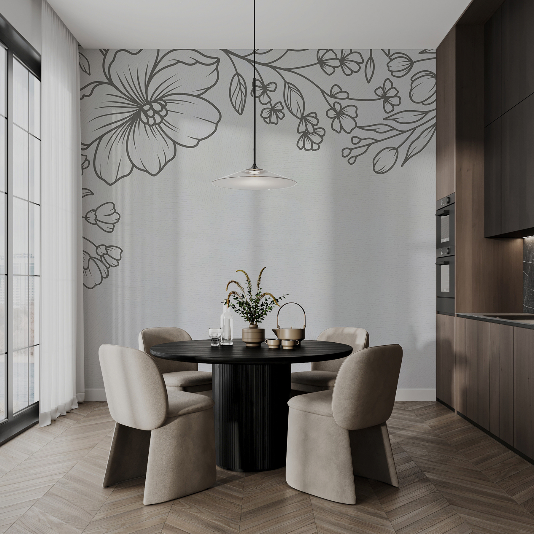 Fiecare petală și frunză este frumos detaliată, aproape ca o mâzgălitură delicată devenită realitate. Tonurile neutre îl fac flexibil, îmbinându-se fără efort cu diverse culori și stiluri. Este genul de fundal care invită la relaxare și creativitate. Imaginați-vă acest tablou într-un colț de lectură confortabil sau ca un punct de atracție senin în camera dvs. de zi – cu siguranță va stârni bucurie și complimente din partea oaspeților!