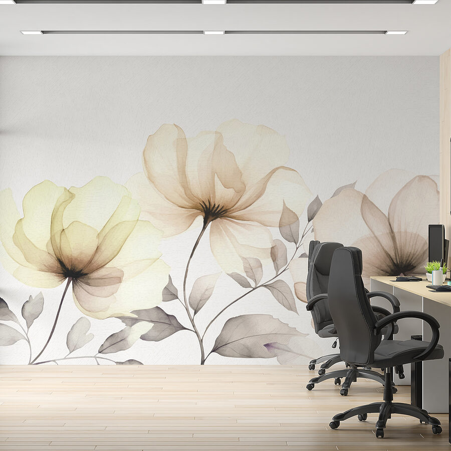 Transformați orice cameră cu această pictură murală încântătoare cu flori delicate care dansează în lumină. Imaginați-vă că pășiți într-o grădină senină, unde nuanțele suave și formele delicate creează o atmosferă care șoptește relaxare. Imaginați-vă-o într-un colț de lectură confortabil, aducând viață ceaiului de după-amiază sau unei cărți bune. Efectul de acuarelă îl face să se simtă ca o evadare de vis, îndulcind marginile vieții de zi cu zi. Prietenii s-ar putea întreba dacă ați îngrijit în secret o grădină; cine nu și-ar dori să se bucure de o asemenea frumusețe? Perfectă pentru un spațiu de locuit care tânjește după o notă de natură și artă, această pictură murală este ca o gură de aer proaspăt pentru pereții dvs.