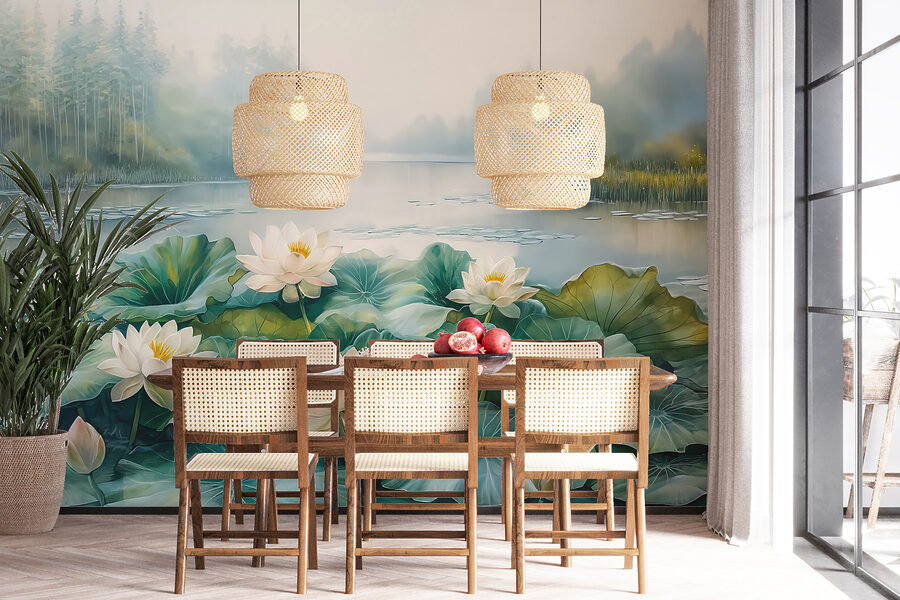 Evadați într-un paradis senin cu “Fototapet w07957” încorporat în spațiul dumneavoastră. Imaginați-vă că vă scufundați în liniștea acestei scene de vis de pe malul lacului – aproape că puteți auzi unduirea blândă a apei și simți briza liniștitoare. Acele lotusuri albe rafinate? O imagine perfectă! Ele adaugă un strop de zen, ideal pentru un colț răcoros în agitația vieții de zi cu zi. Iar fundalul cețos cu copaci șoptitori? O stare de spirit totală pentru locurile de mindfulness sau yoga. Transformă-ți camera într-un refugiu liniștit și lasă frumusețea naturii să te ducă departe ori de câte ori îți ridici privirea. Crede-mă, vei dori să rămâi aici.